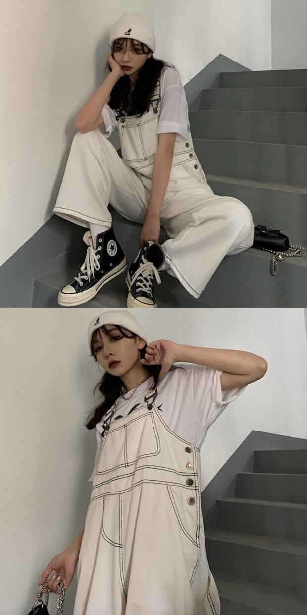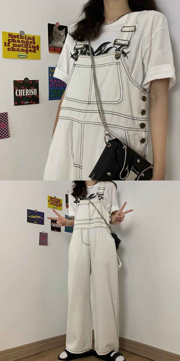 サマールーズオーバーオール レディースカジュアルパンツ ジーンズ スタンダードワイドレッグ レトロ 夏物 ワイドパンツ ケッペル98972824974