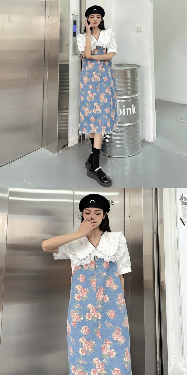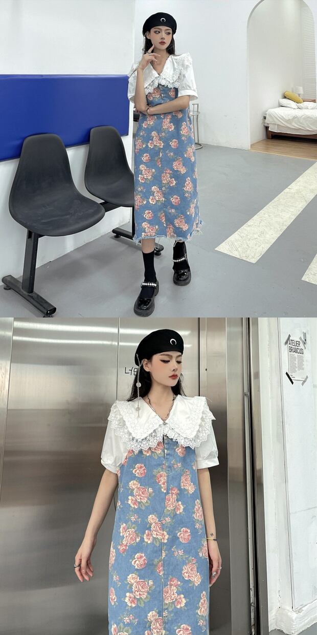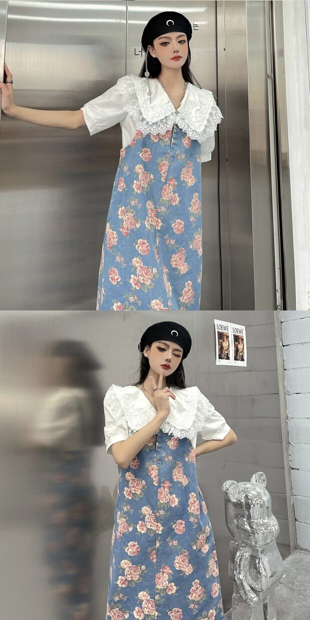 カラーレースシャツ 半袖スリーブトップス ロングドレス ショート ハーフスリーブ ケッペル20175292508