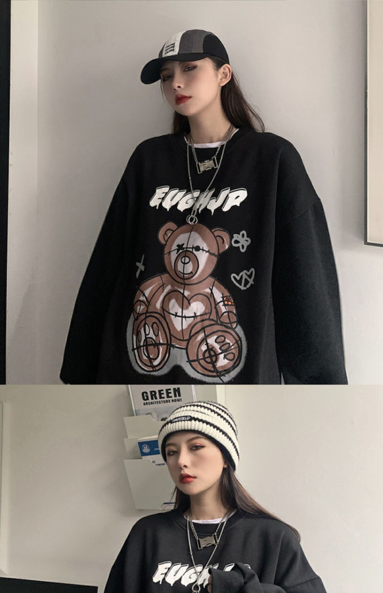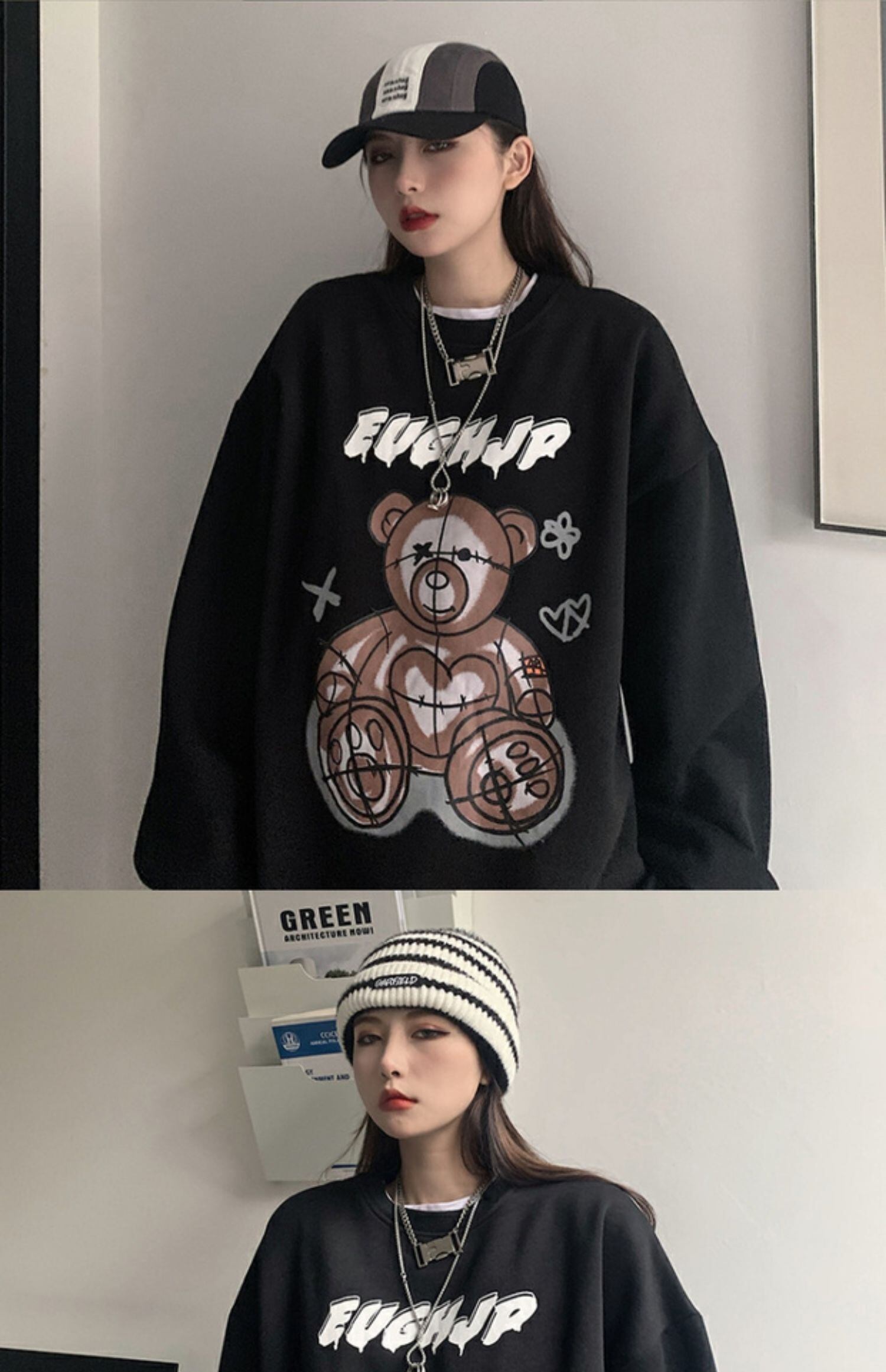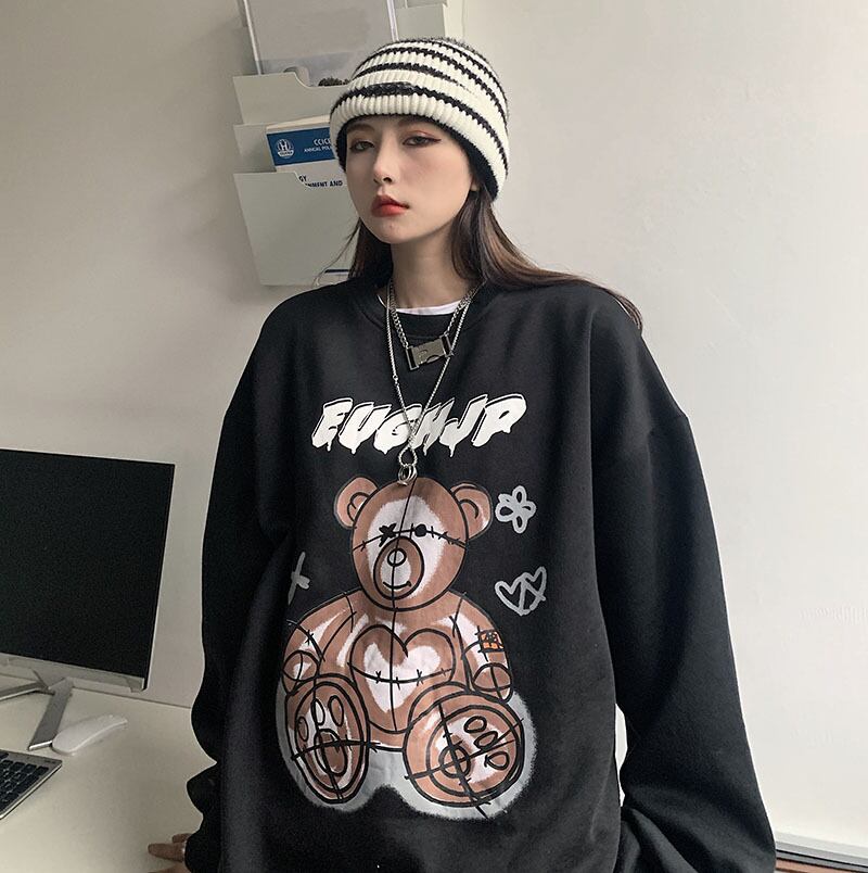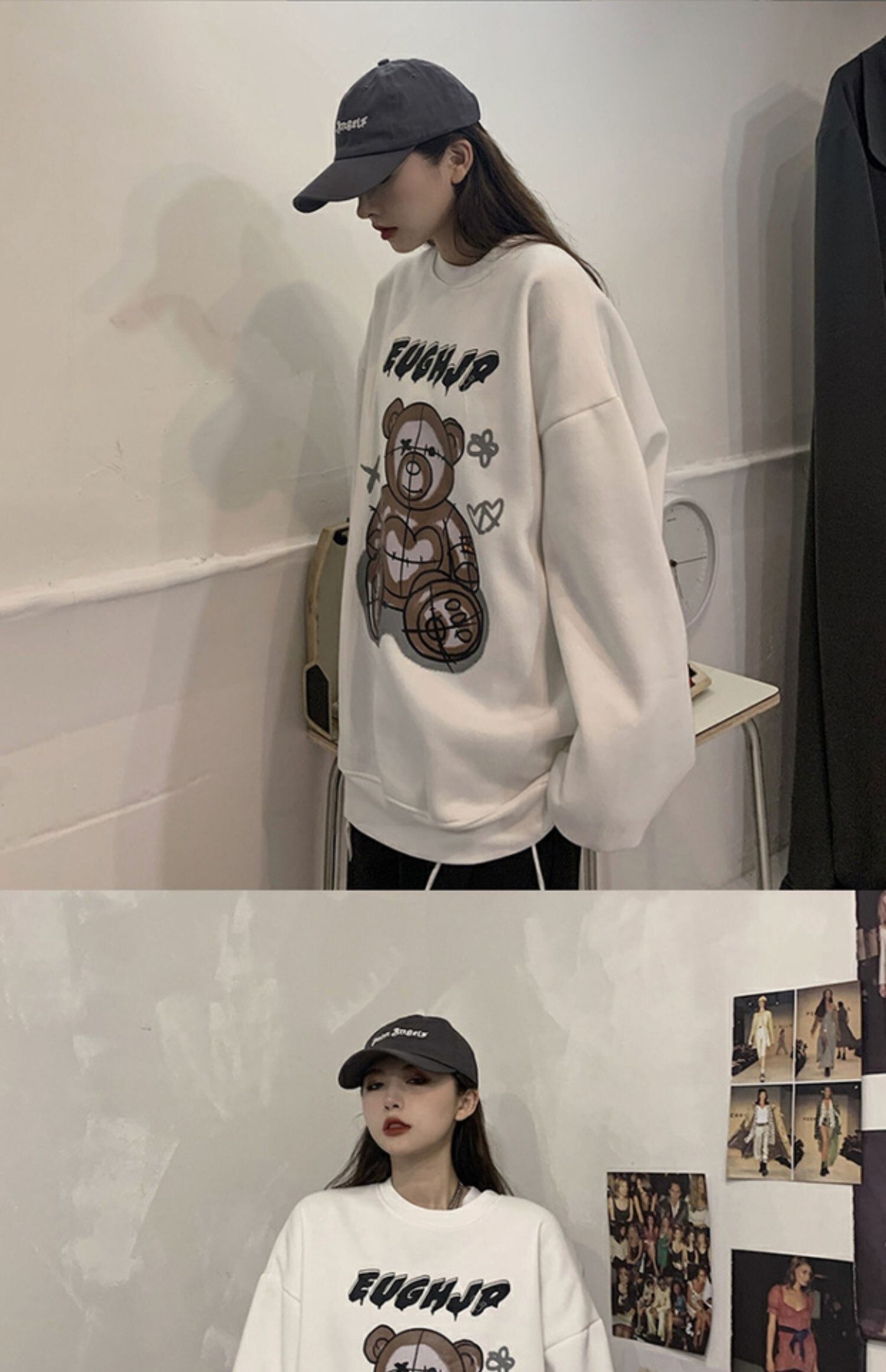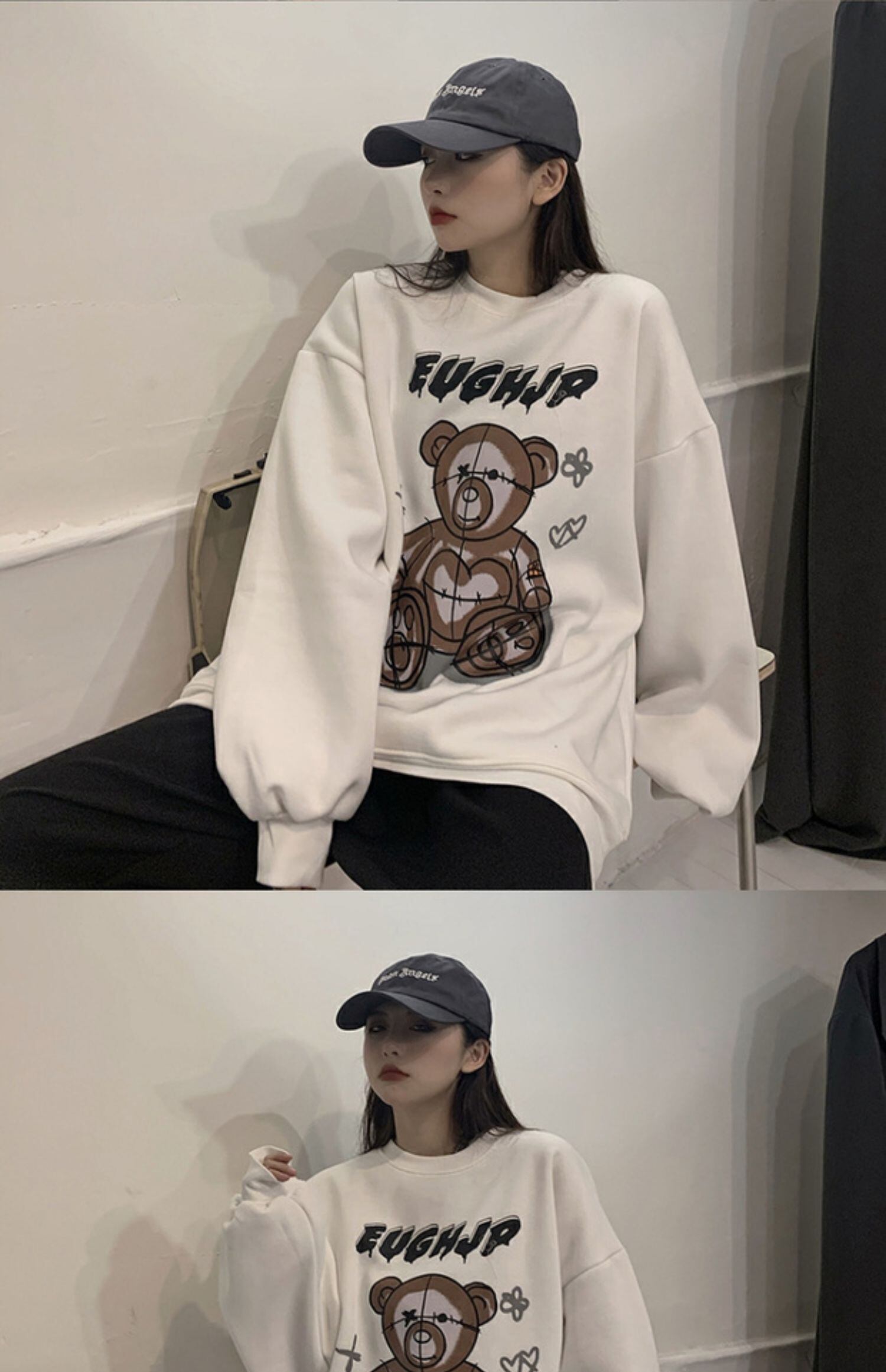 オータムウィンターセーター スタイルプリントルーズラウンドネック長袖スリーブトップス ロング かわいい 秋物 冬物 Oネック ケッペル74383326767