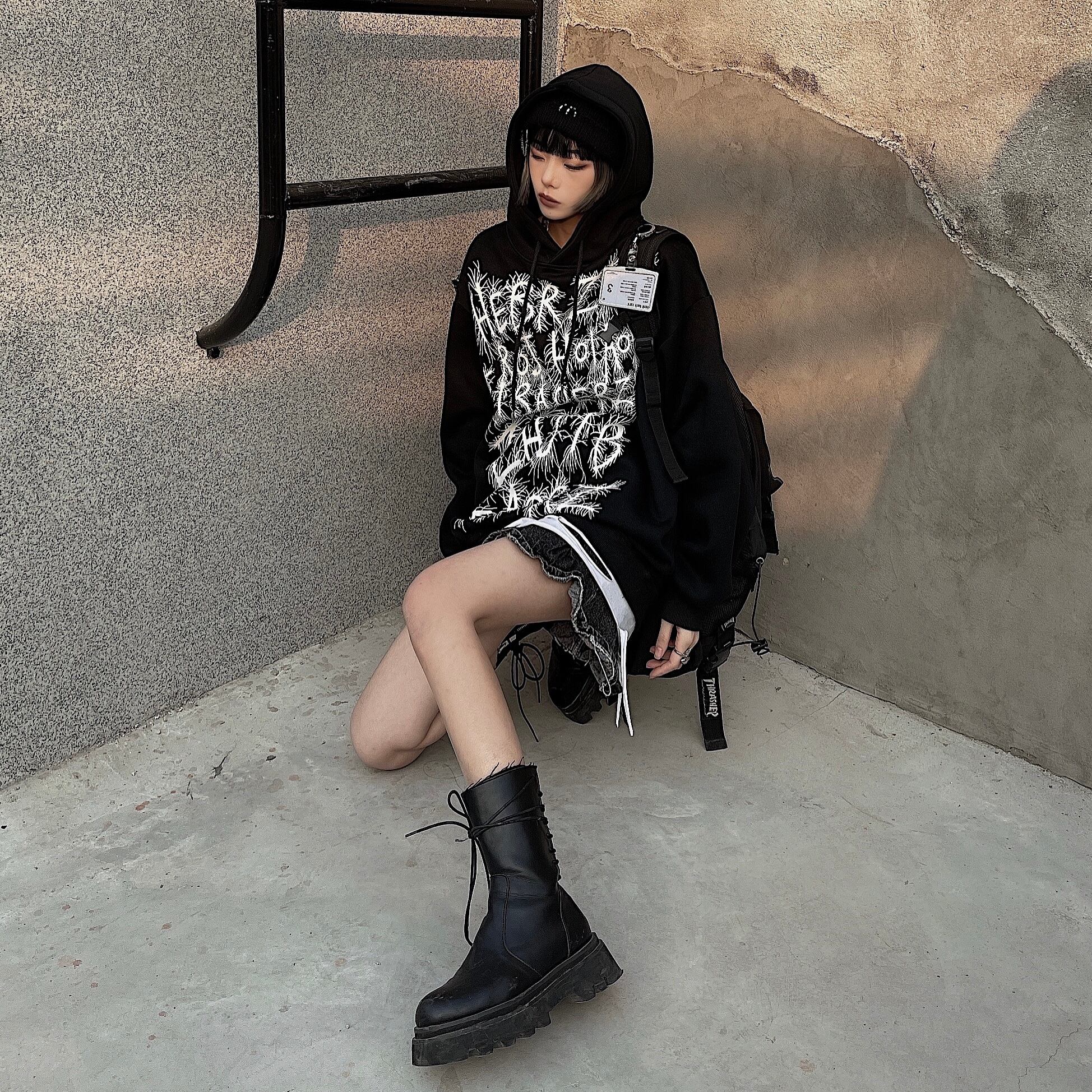 ダークルーズセーター スプリングレディースカジュアルトップス フードプルオーバー ロング 長袖 春物 ケッペル39046966049