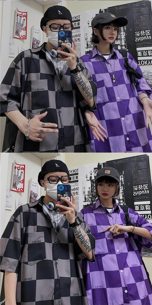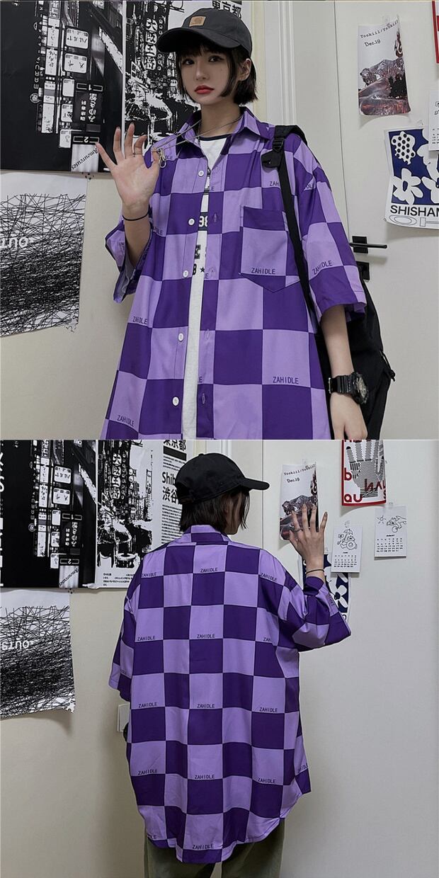 スタイルサマースタンダード格子柄シャツ レディース レトロ ストリート 大きめサイズ 夏物 ケッペル37672451274