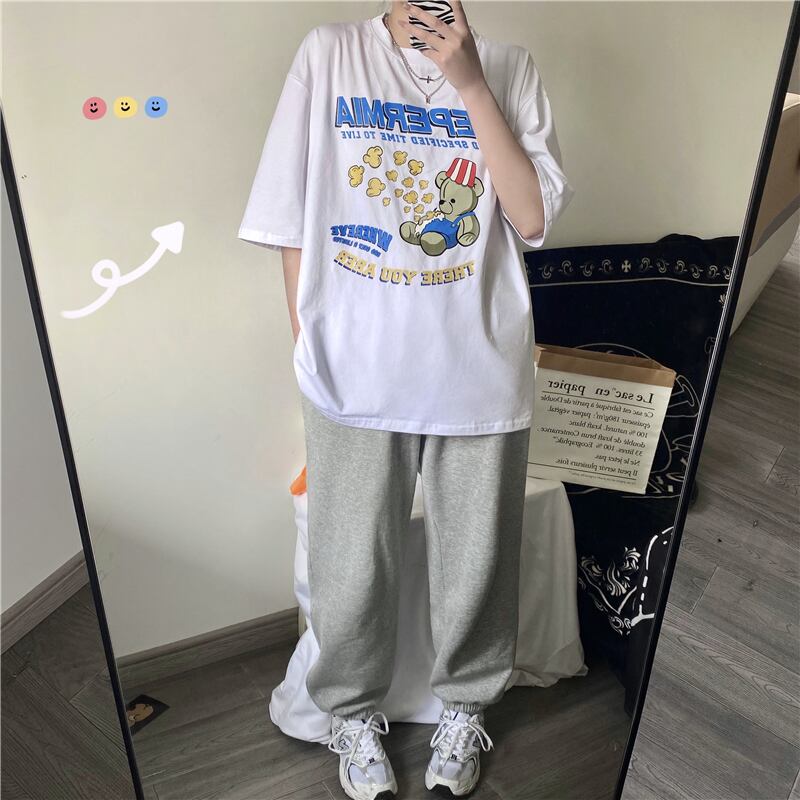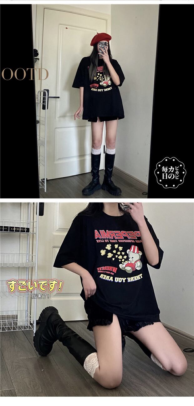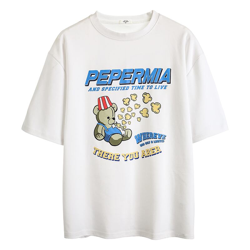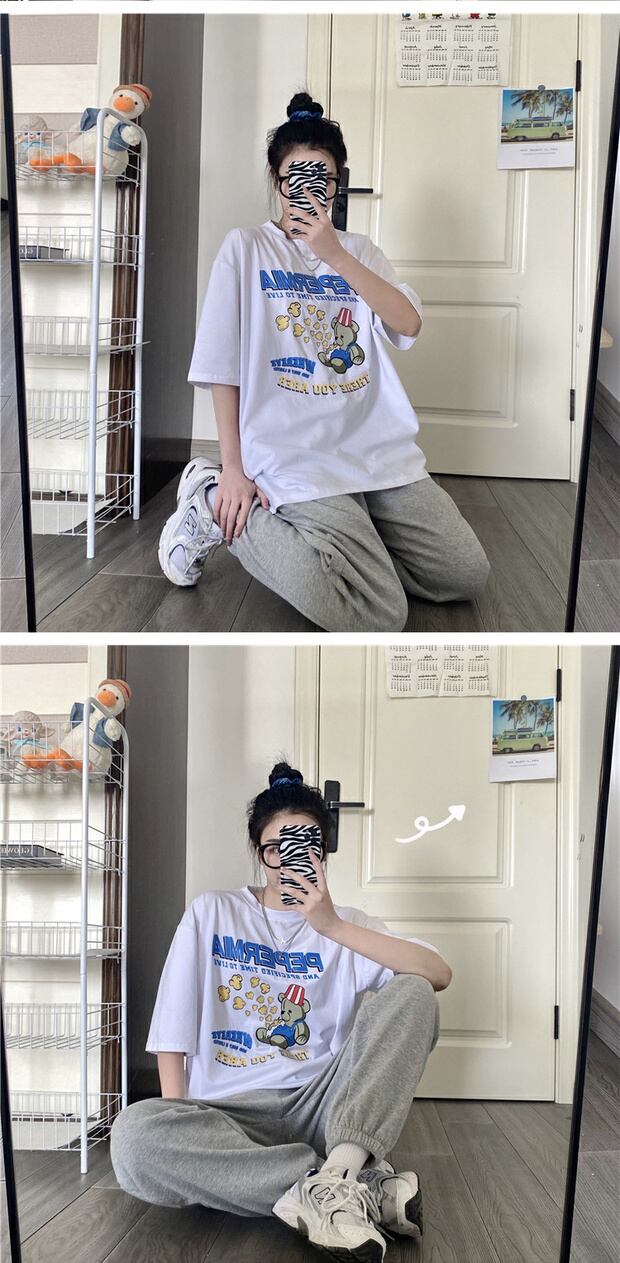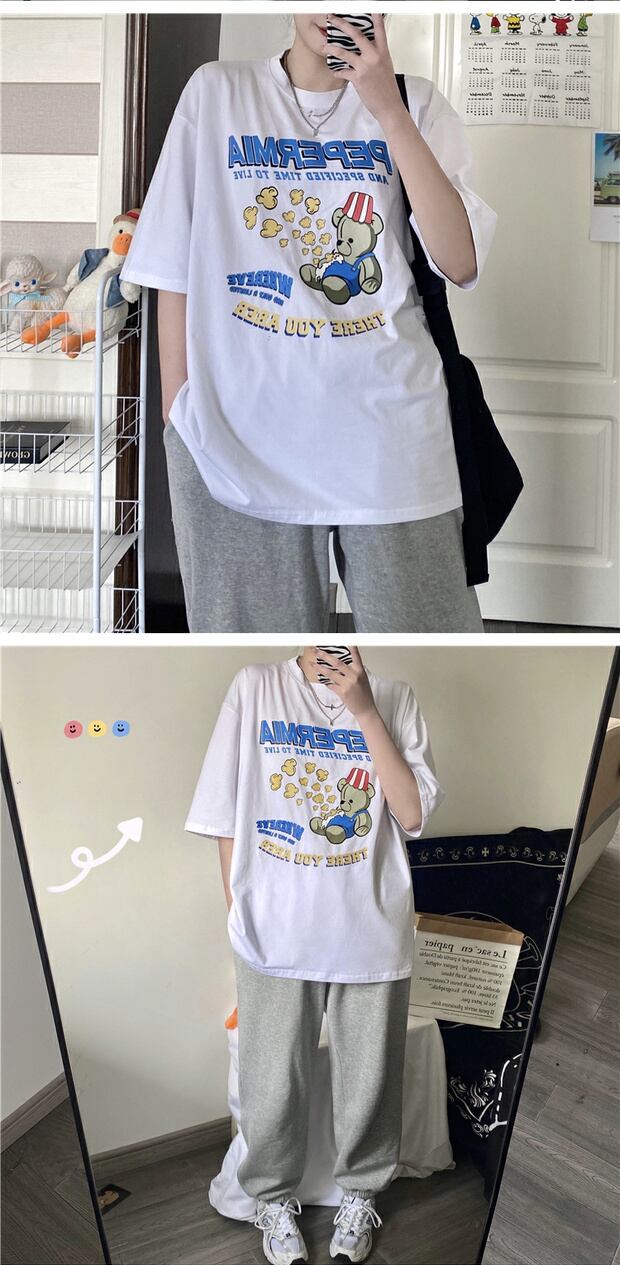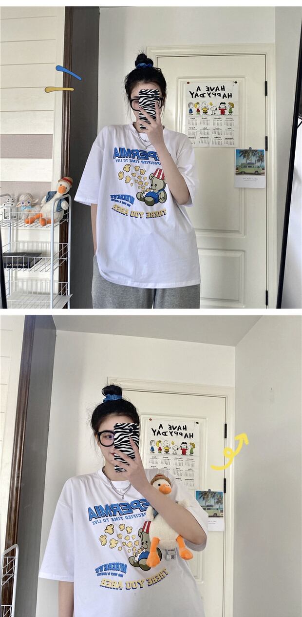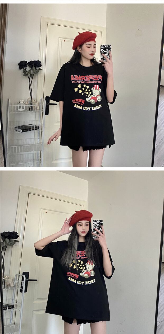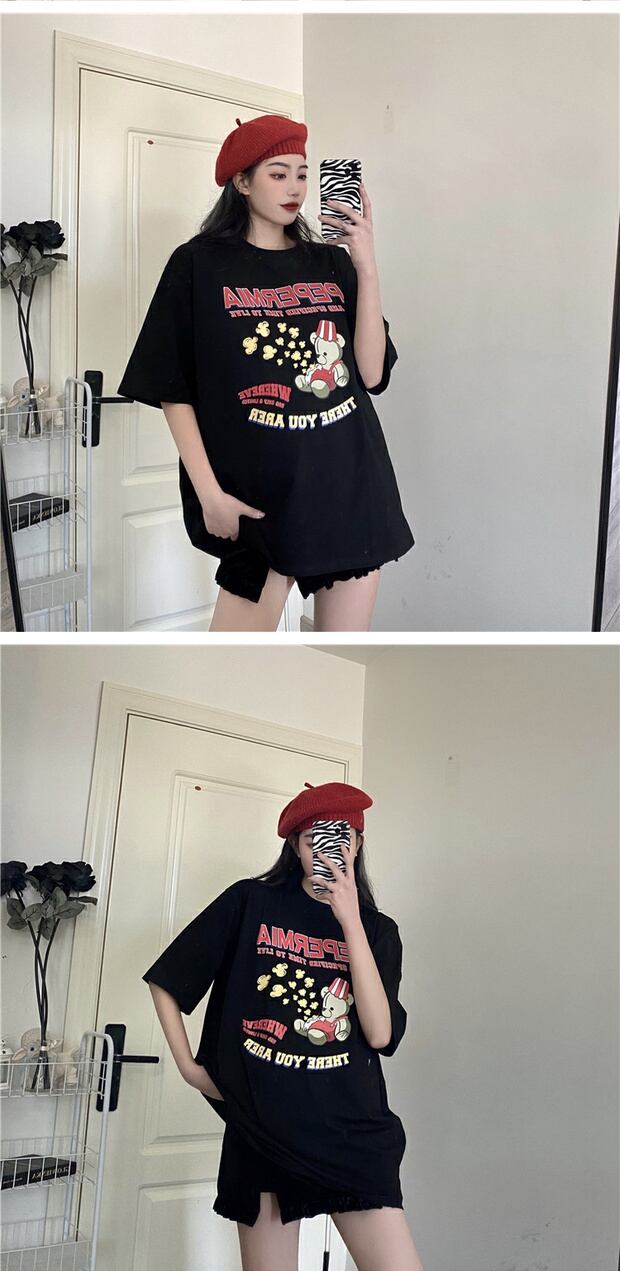 サマールーズ半袖スリーブプリント柄Tシャツ ロングラウンドネックトップス ショート コットン ハーフスリーブ 夏物 Oネック ケッペル45222533674