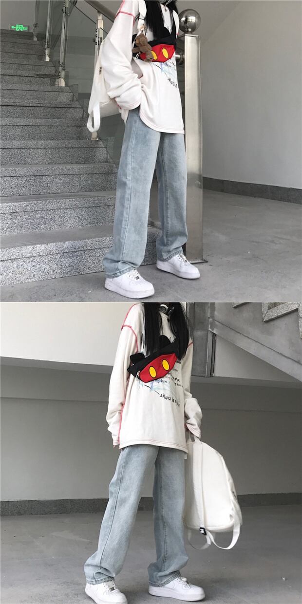 スタイルジーンズ ルーズハイウェストウェストワイドレッグパンツ カジュアル かわいい ワイドパンツ ケッペル91699438505