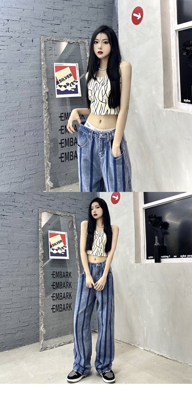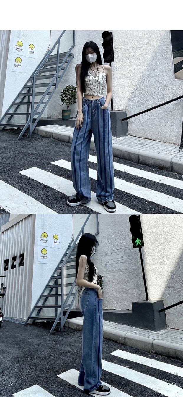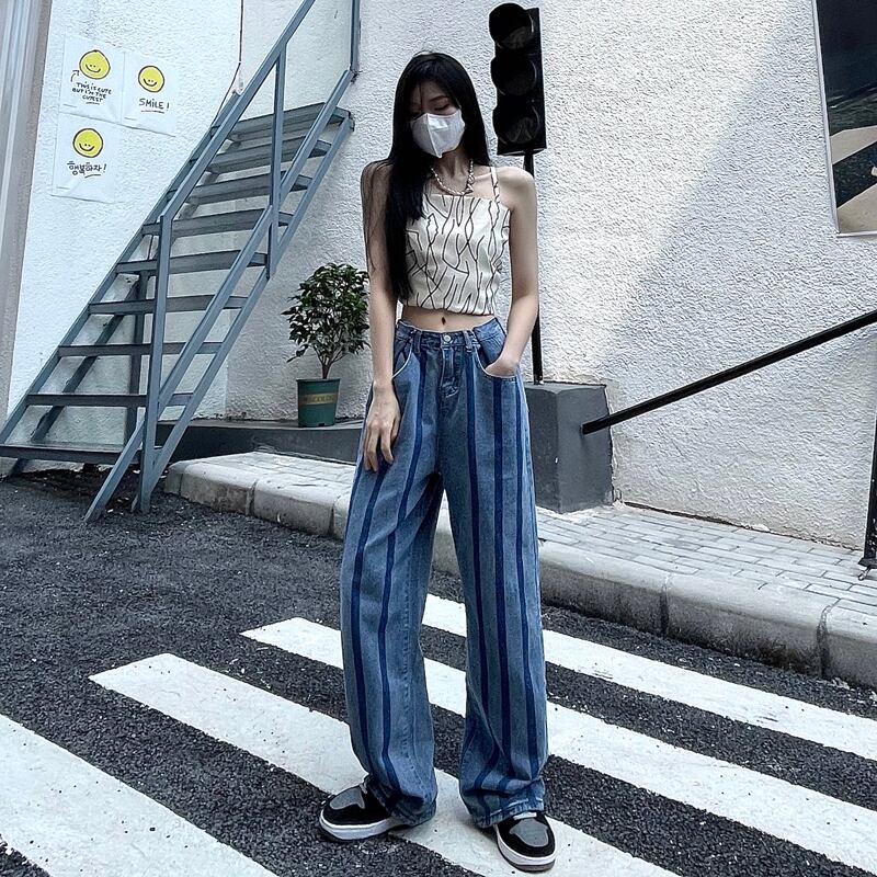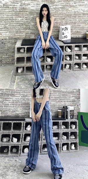 スタイルスタンダードカジュアルストライプ薄手パンツ ジーンズ レトロ ストリート かわいい ケッペル30261974212