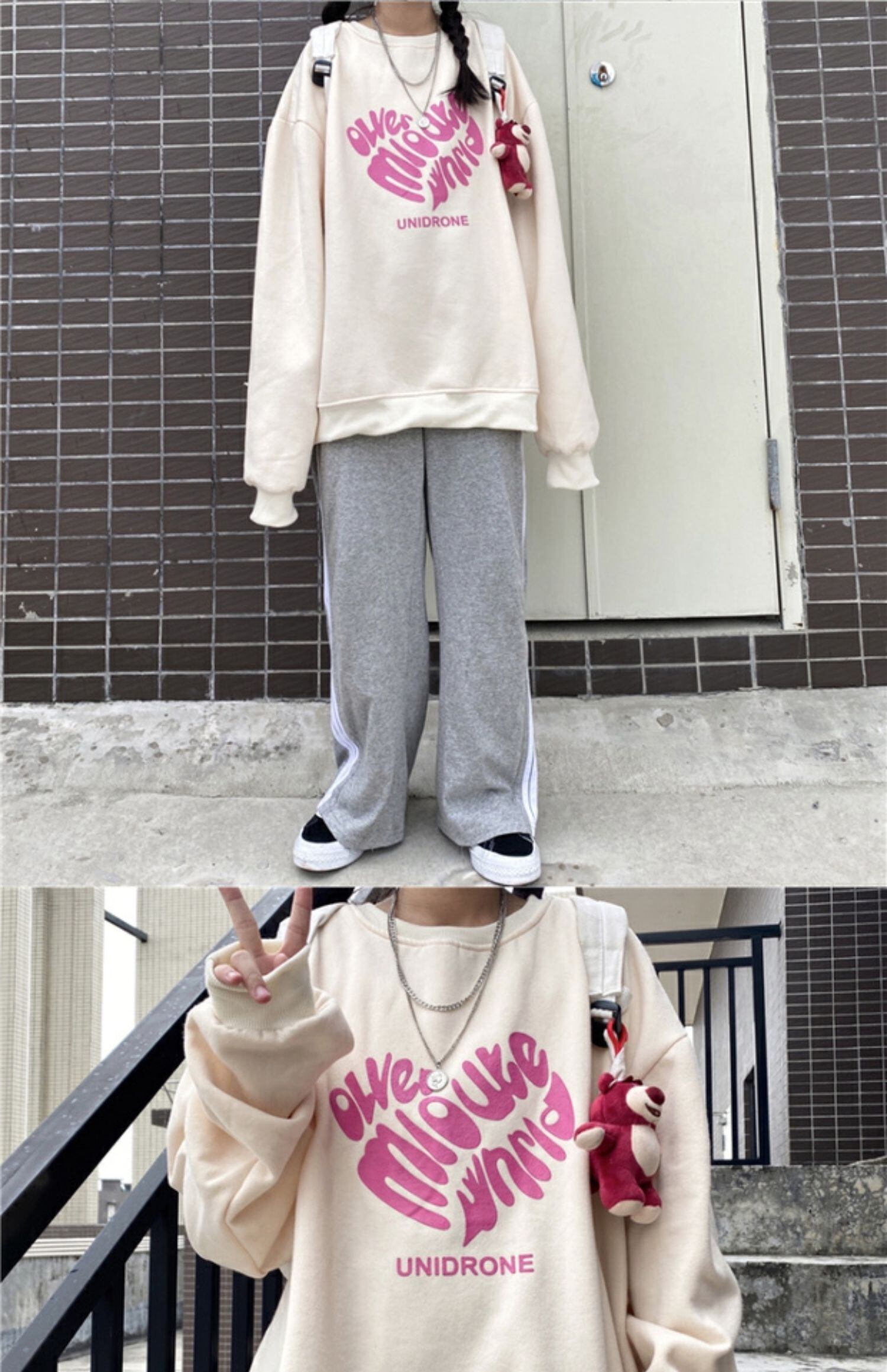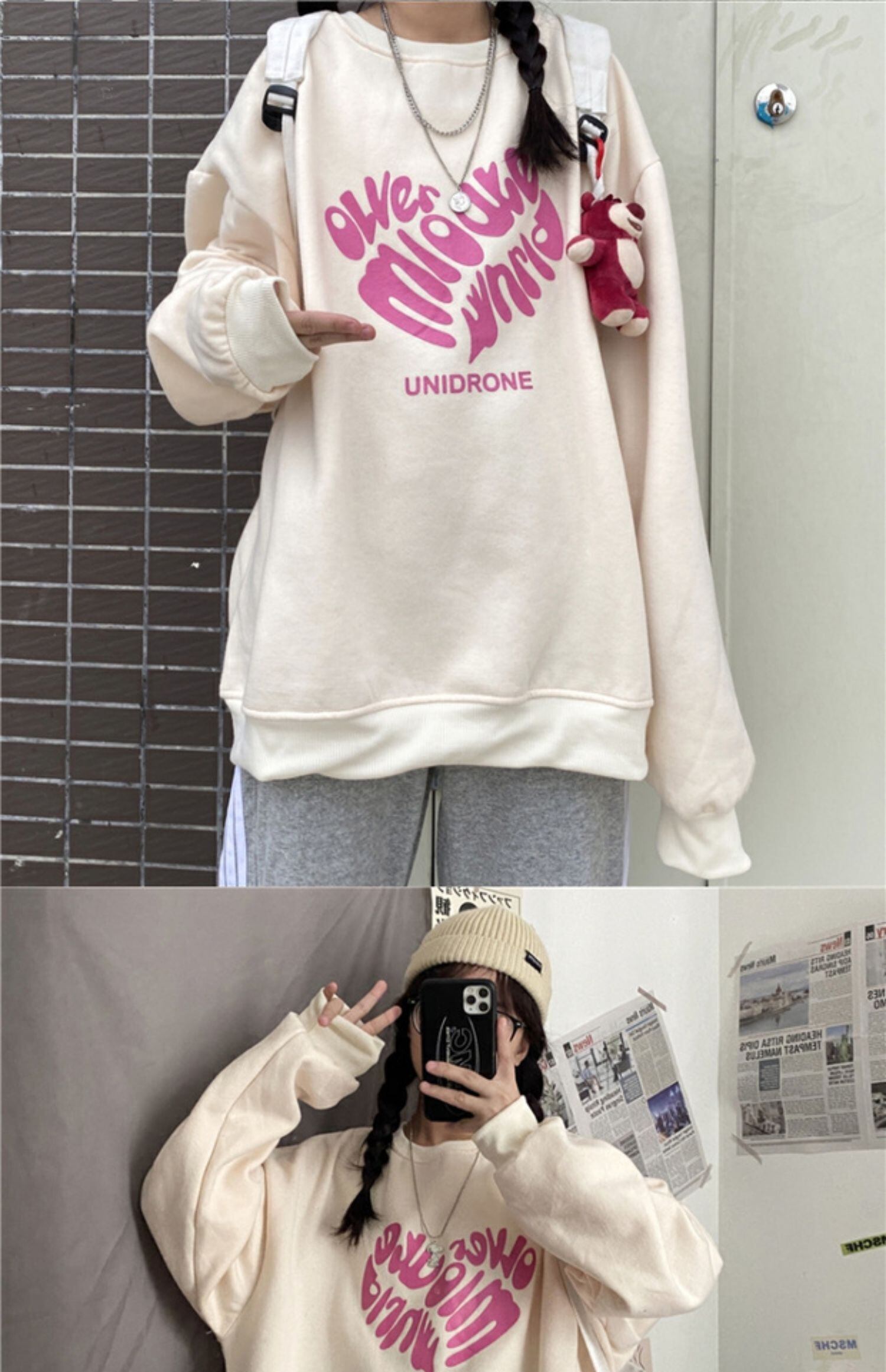 ルーズラウンドネックセーター オータムウィンタープリント柄ベルベットジャケット プルオーバー 長袖スリーブ ロング 秋物 冬物 Oネック ケッペル58406242651