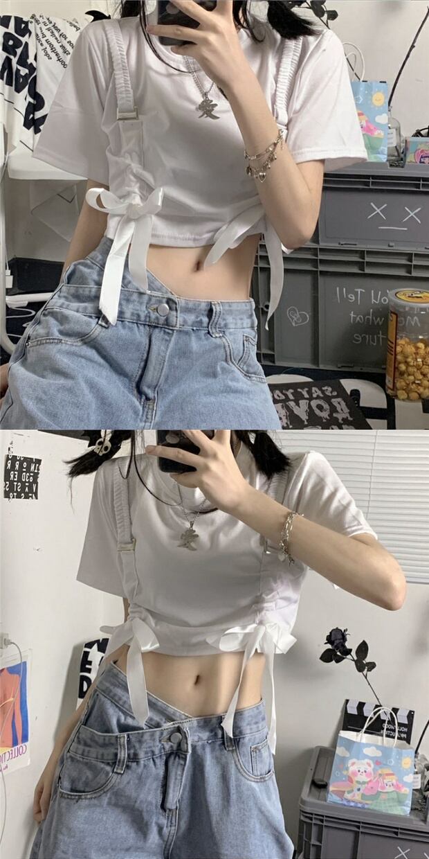 カジュアルショートTシャツ ストラップレストップス ケッペル4422013124