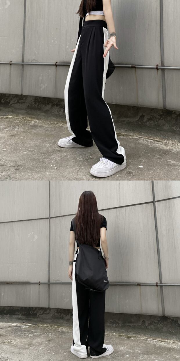 ルーズパンツ ブラックホワイトサマーハイウェストウェストカジュアル 夏物 ステッチ ケッペル25315910222