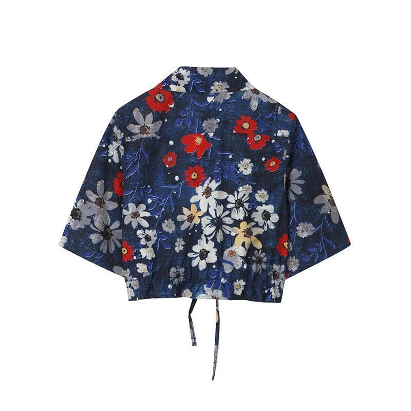 サマースタンダードプリント柄ショートシャツ スタイルギャザークロップトップ トップス レトロ 夏物 ケッペル85473685595