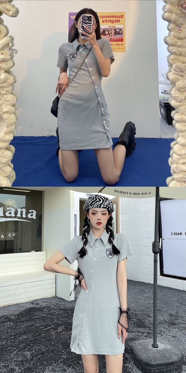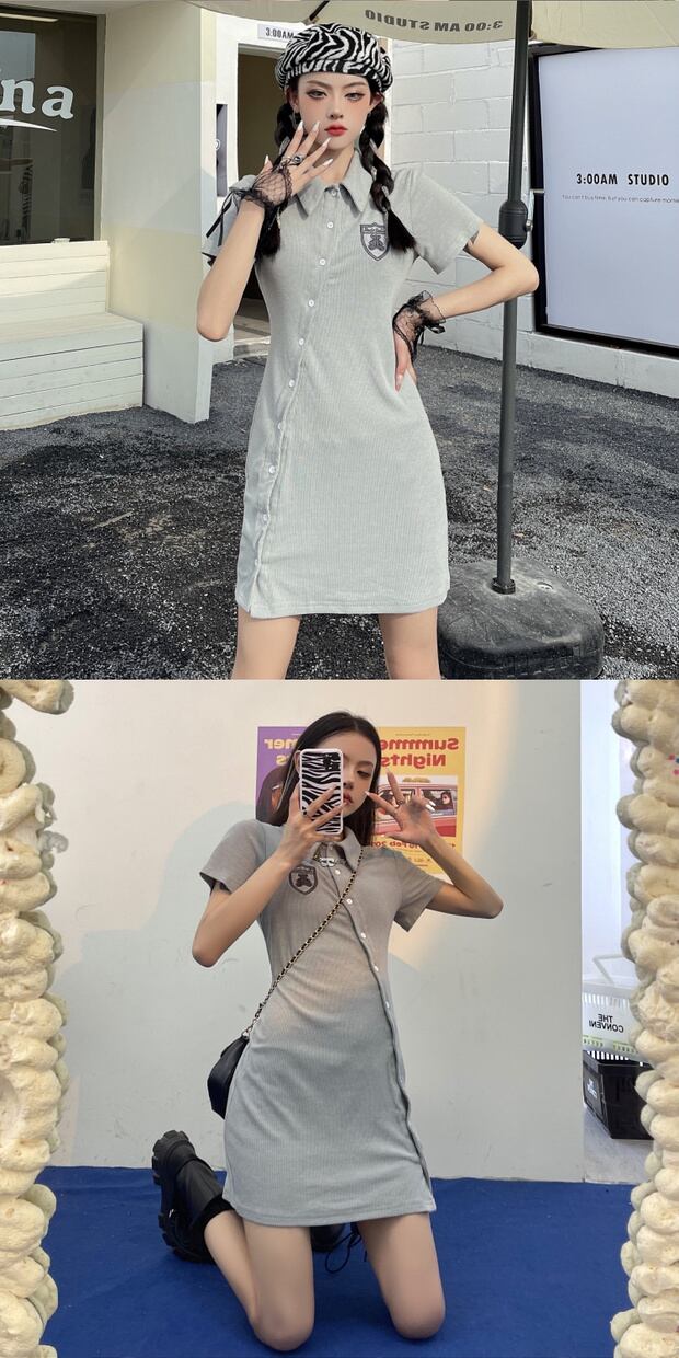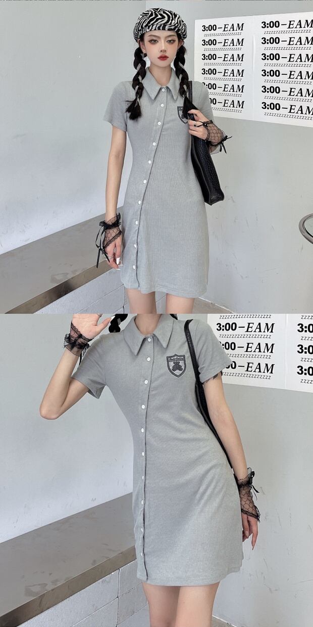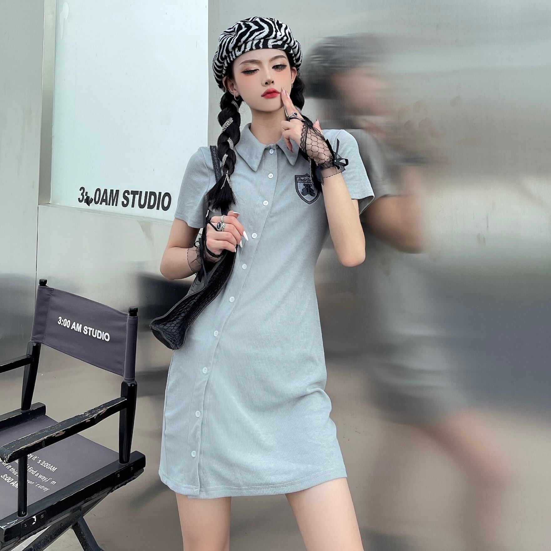 サマーカジュアルシャツ スカート バックルカラードレス スリムTシャツ 夏物 ケッペル10461219825