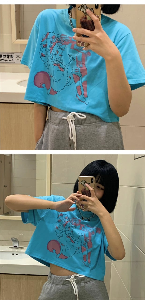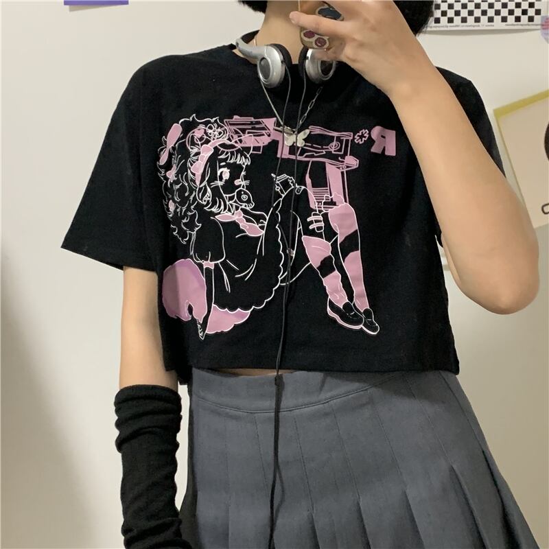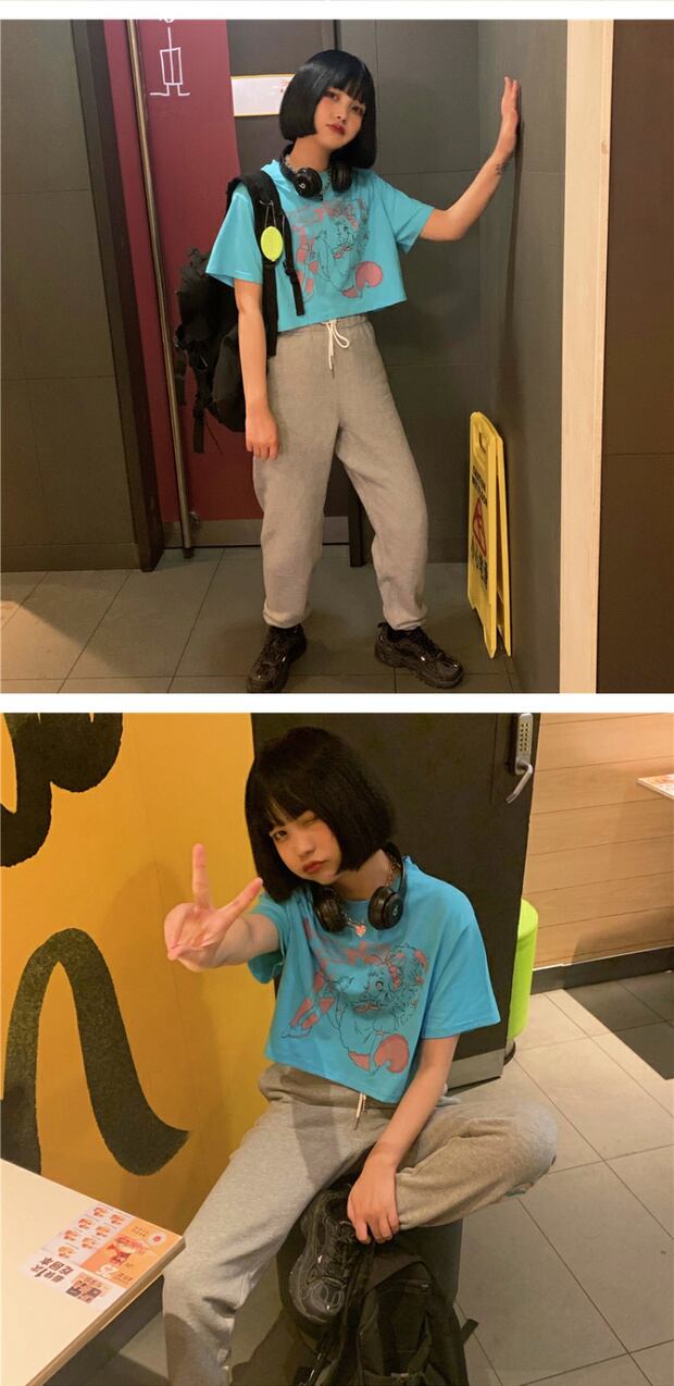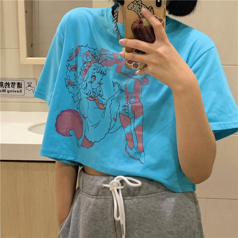 レッドショートスタイルスタンダードプリントTシャツ シャツ ルーズカジュアル レトロ かわいい ケッペル87776539307