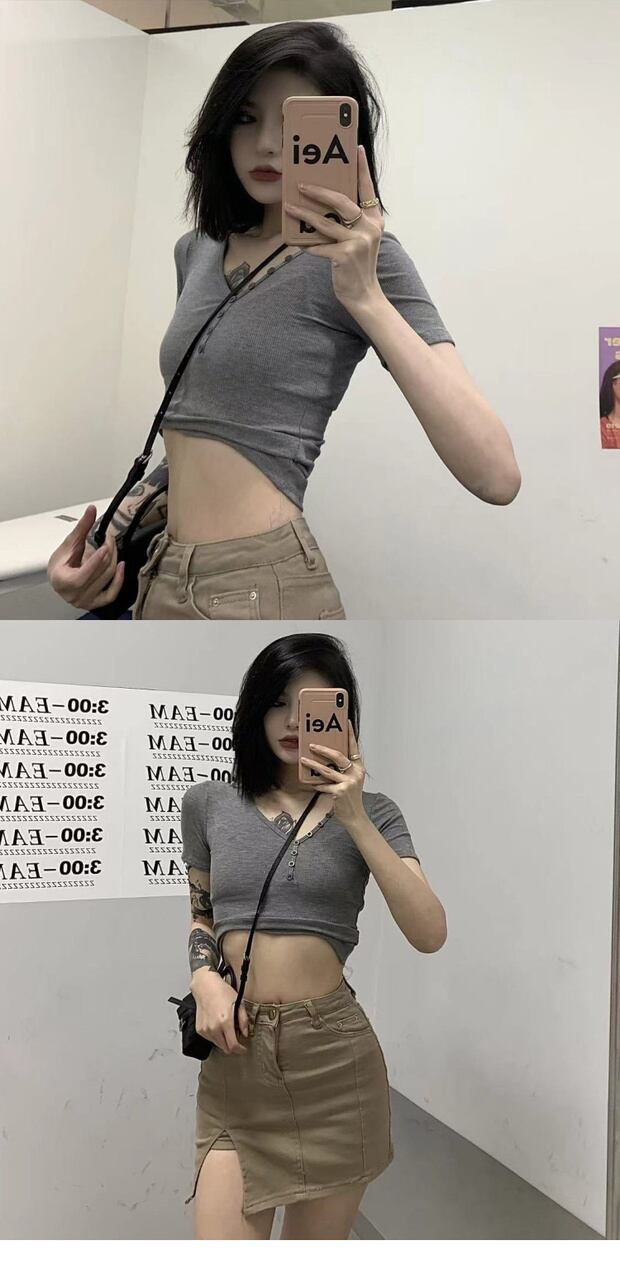 Tシャツ レディースショートサマースリムVネック 夏物 ケッペル69232064825