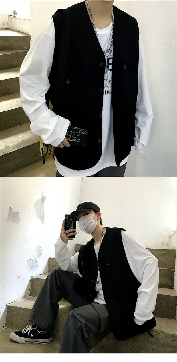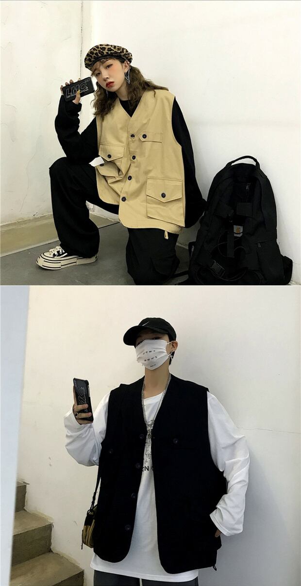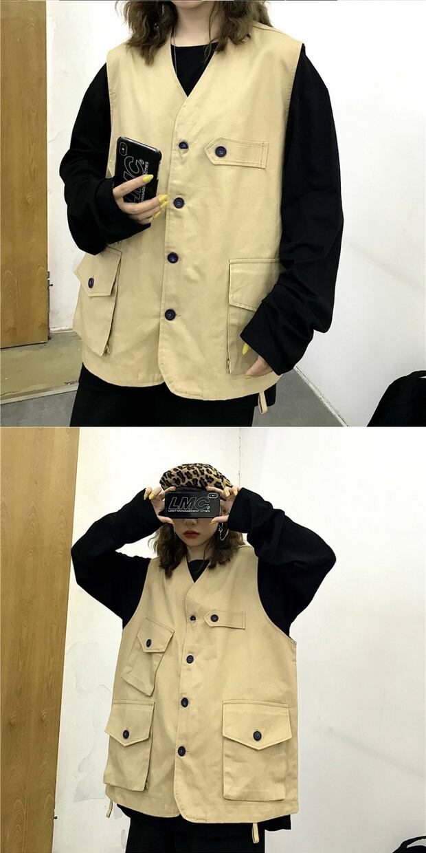スタンダードカジュアルサマーオータムルーズノースリーブトップス レトロ 夏物 秋物 ポケット多め マルチポケット ケッペル94134882826