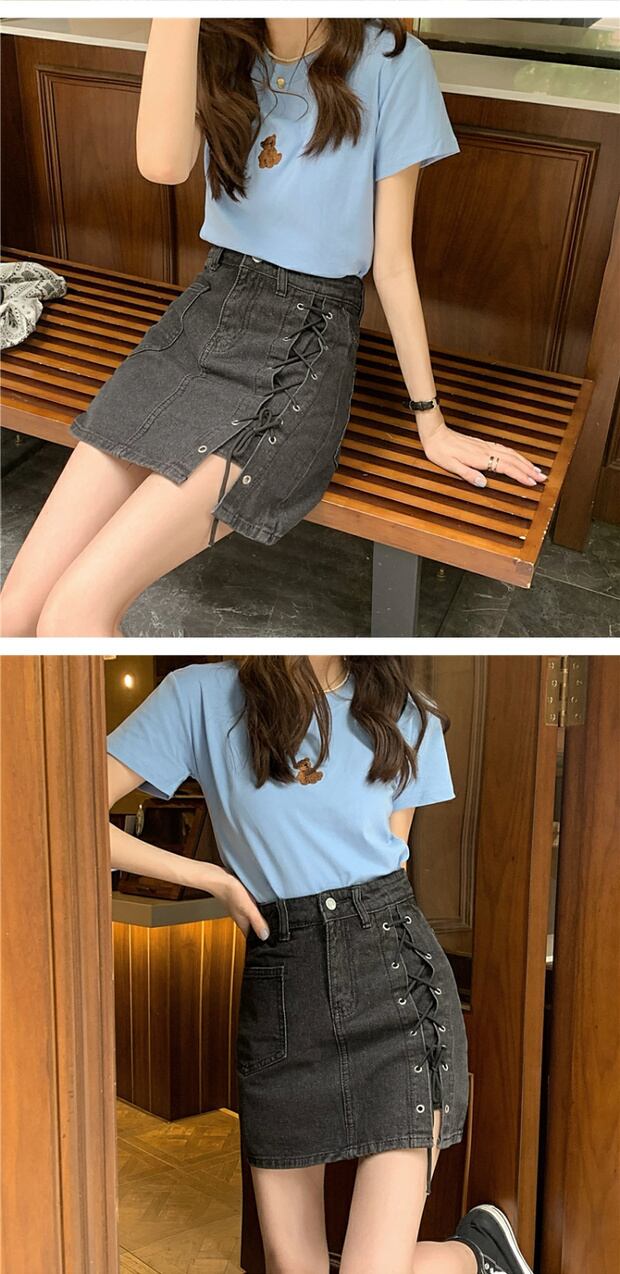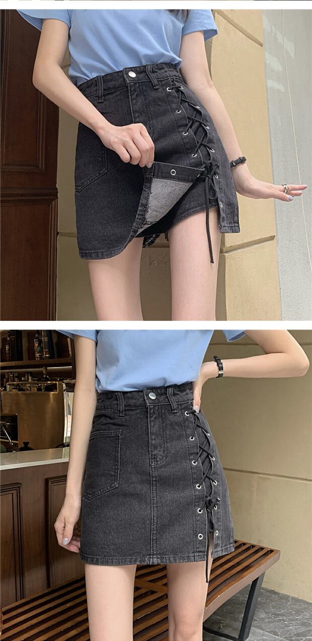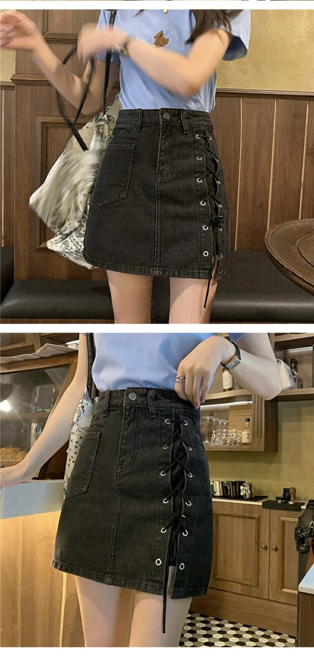 サマースリムショートスカート スタイルサイドハイウェストウェスト薄手Aライン レース ストリート 夏物 レースアップ ケッペル33745577219