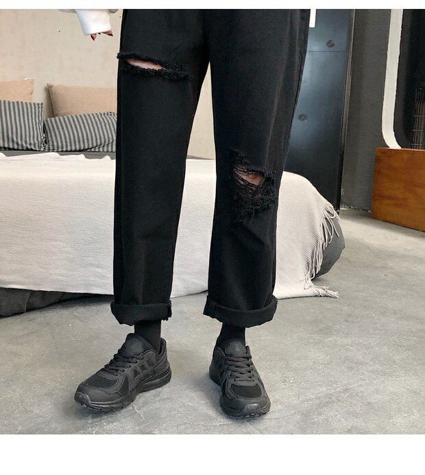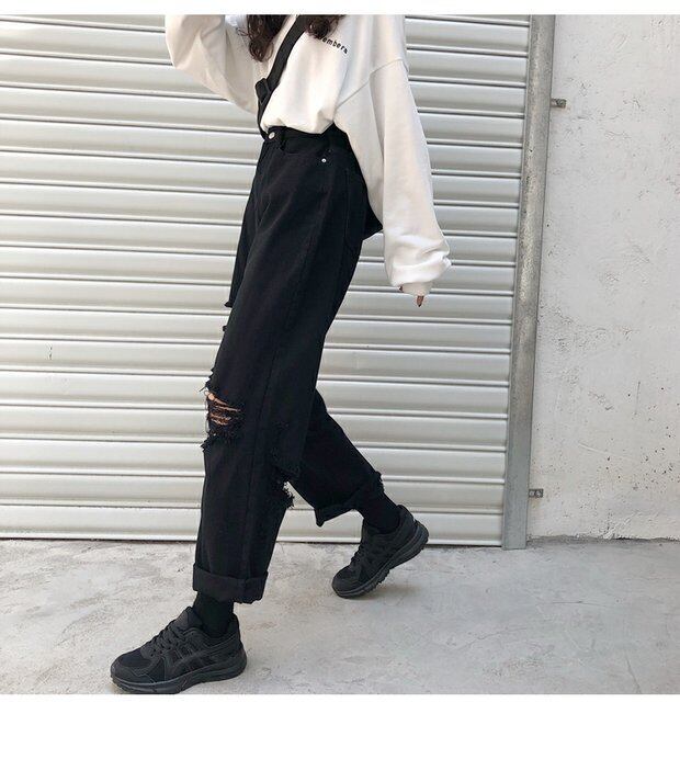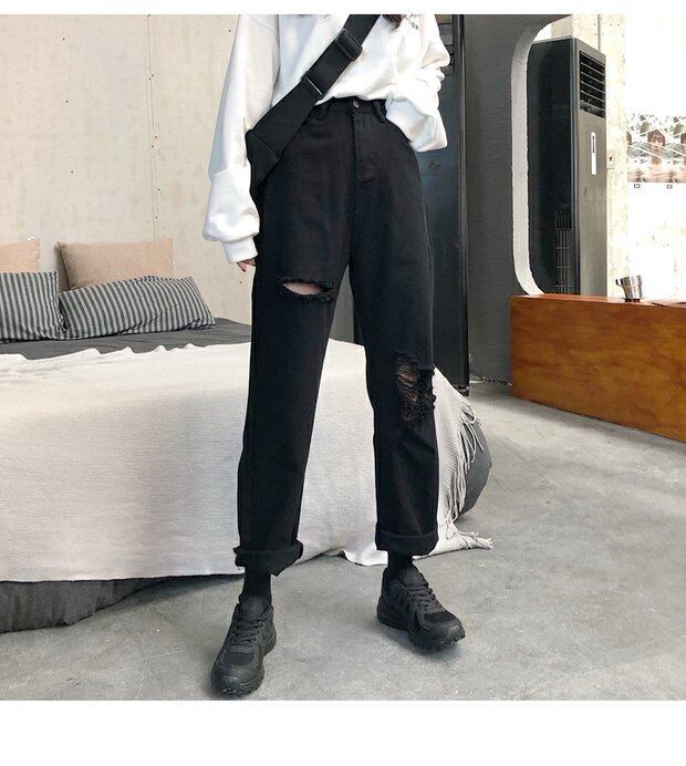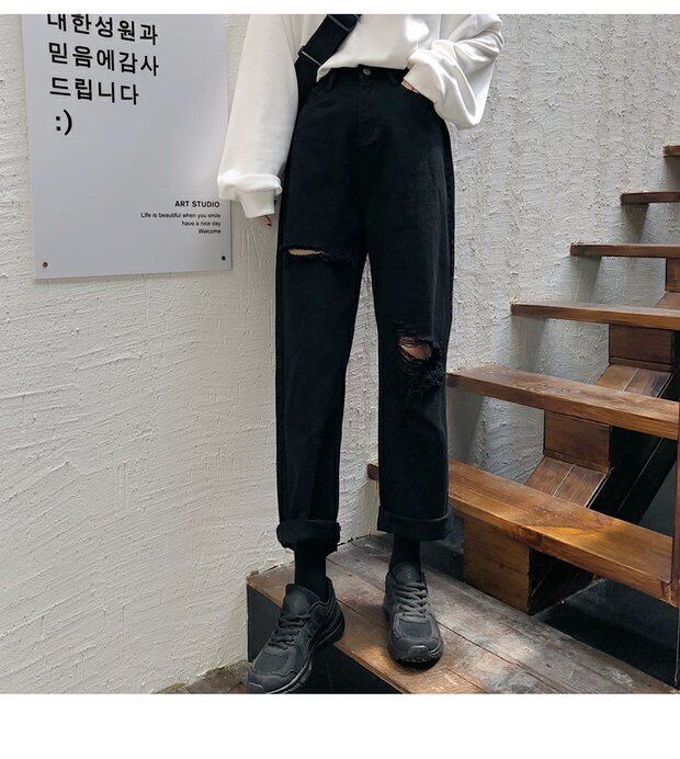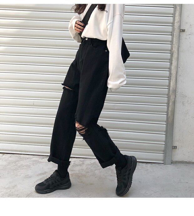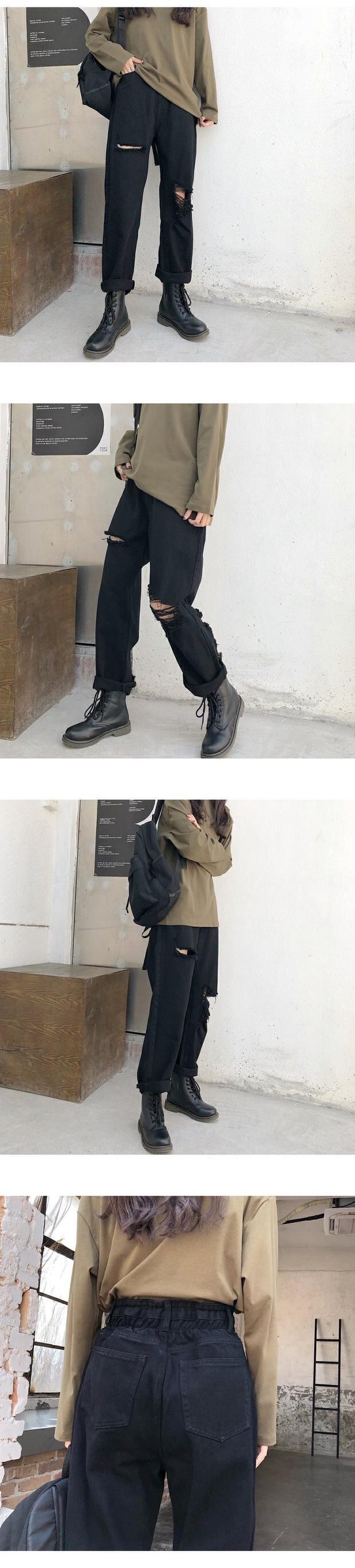 スプリングスタイル薄手ルーズストレッチウェストパンツ ブラックジーンズ エラスティック 伸縮 春物 ケッペル29619458592