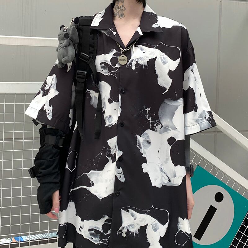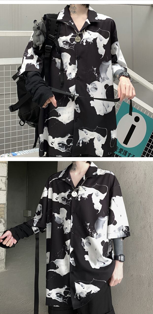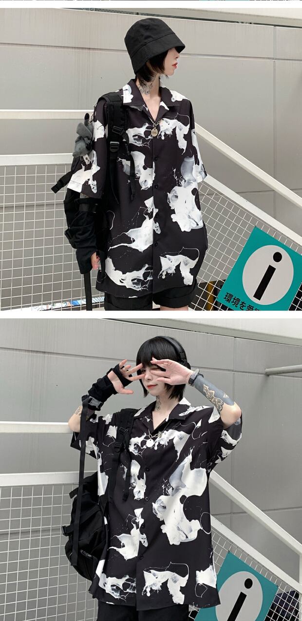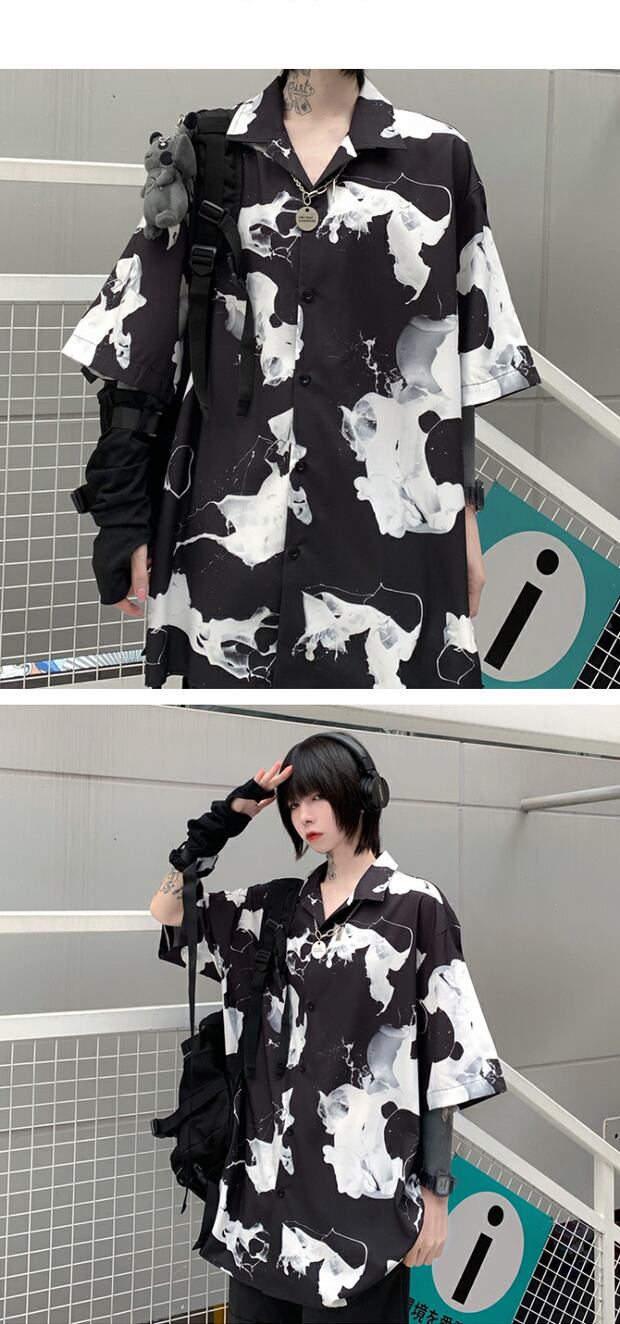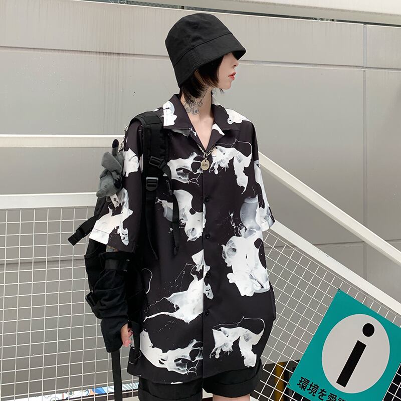 ダークサマーカラールーズシャツ レディーススタンダードプリント柄カジュアルスタイル レトロ ストリート 夏物 ケッペル74156792444