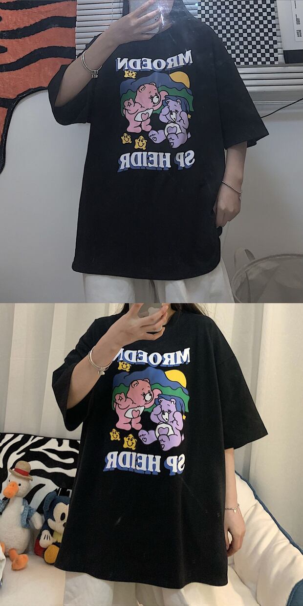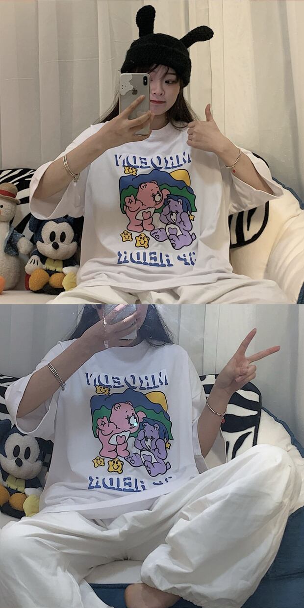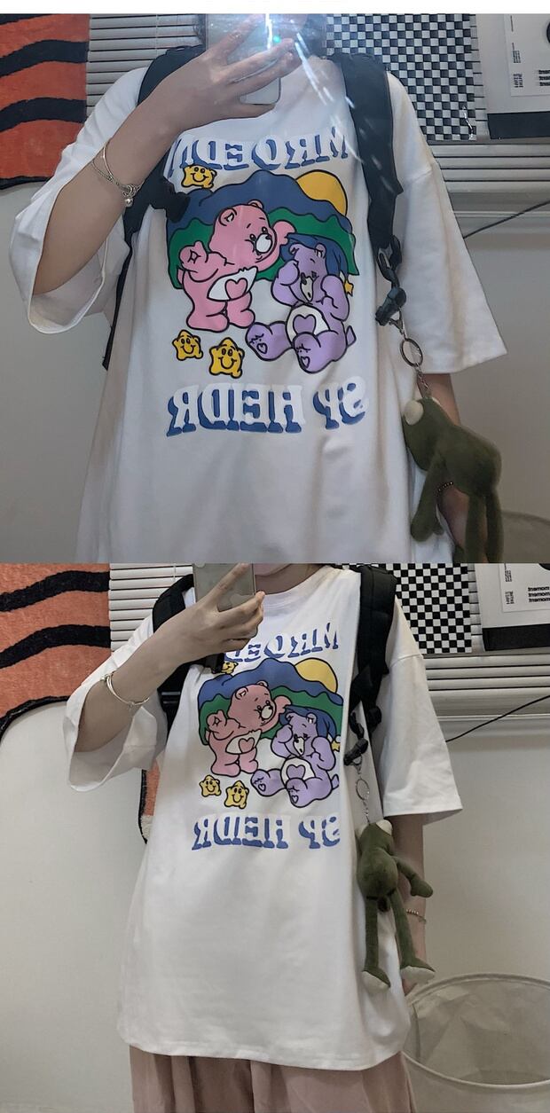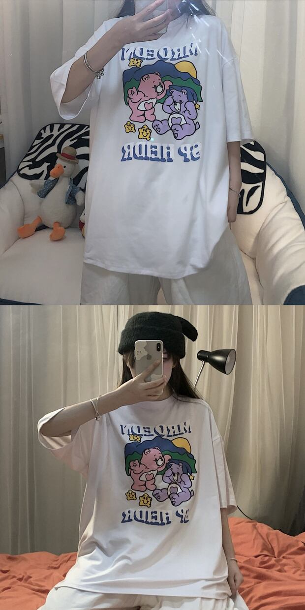 サマープリントTシャツ ルーズスタイルホワイト コットン 夏物 ケッペル68002953444