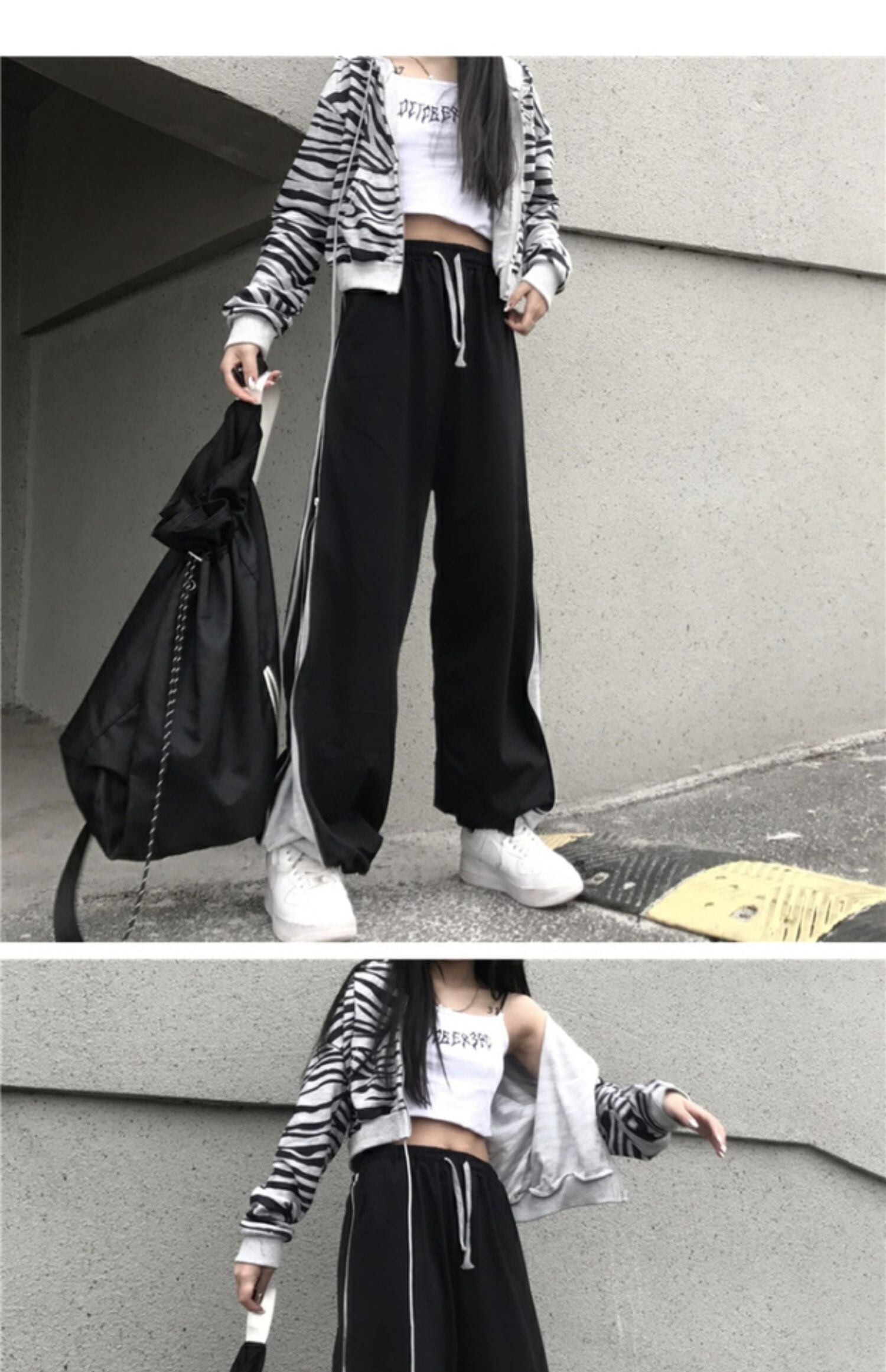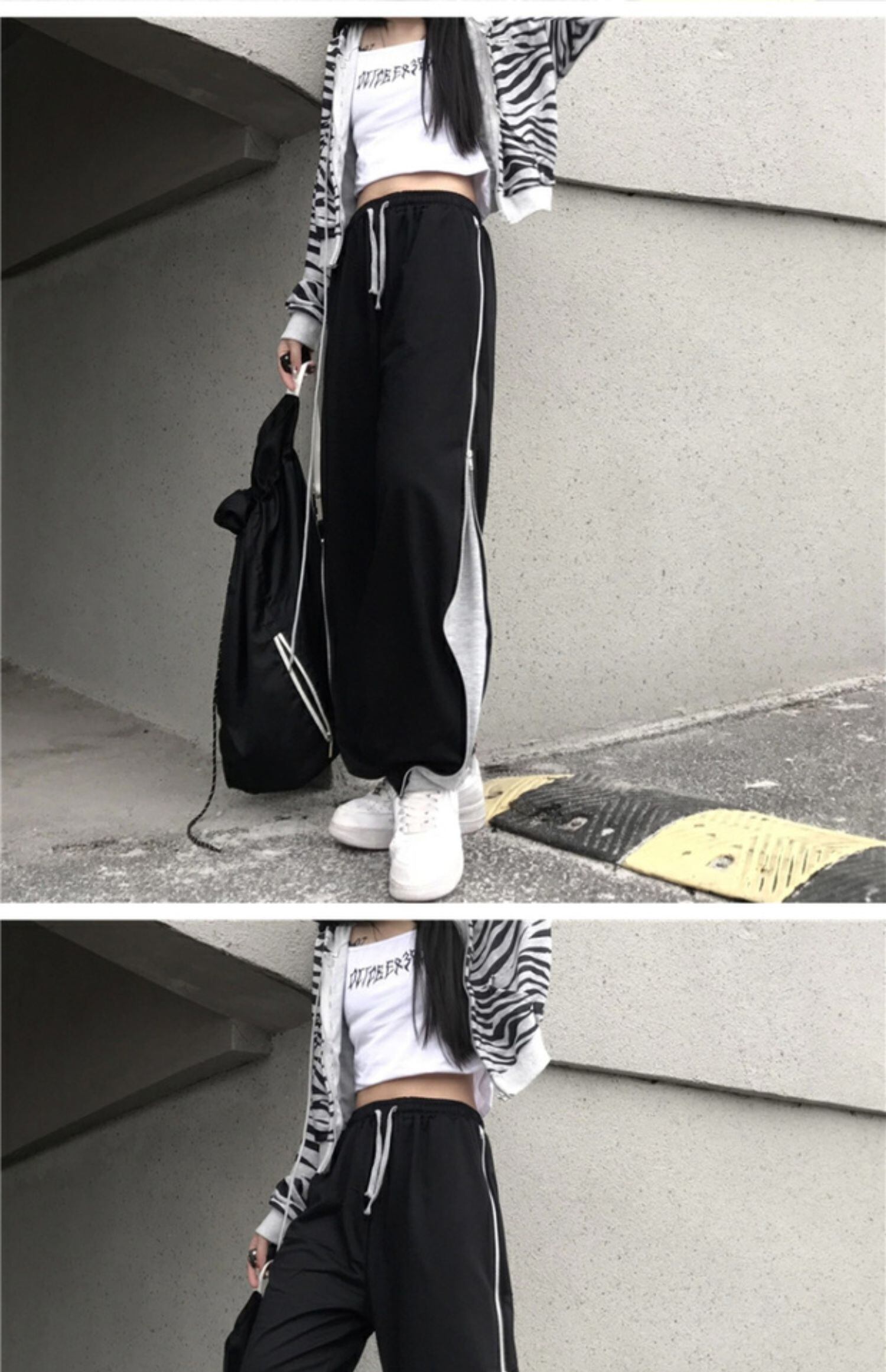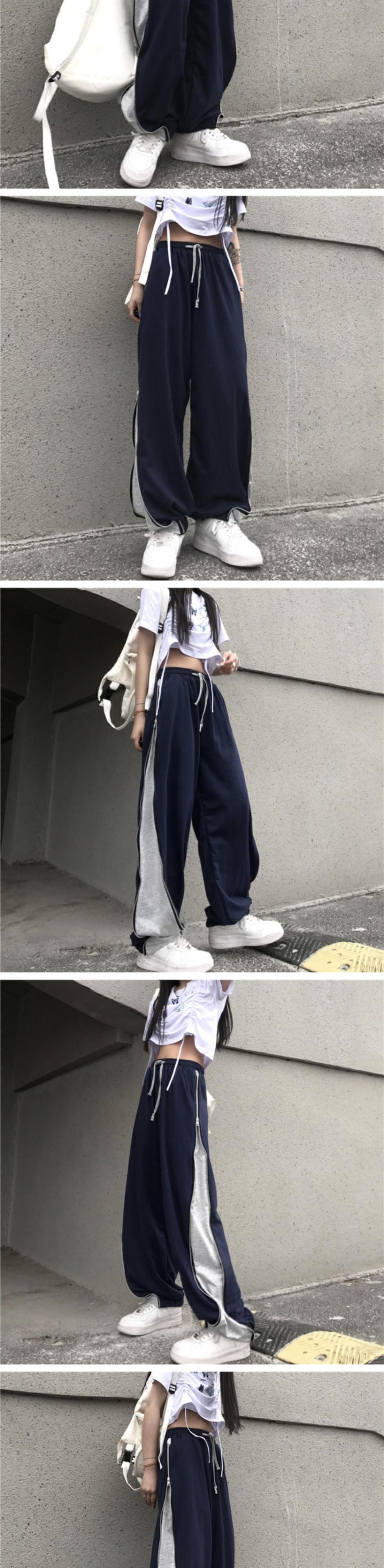 スタイルパンツ レディースサイドジッパーカジュアルストレッチウェストルーズ エラスティック 伸縮 ステッチ ケッペル52817699881