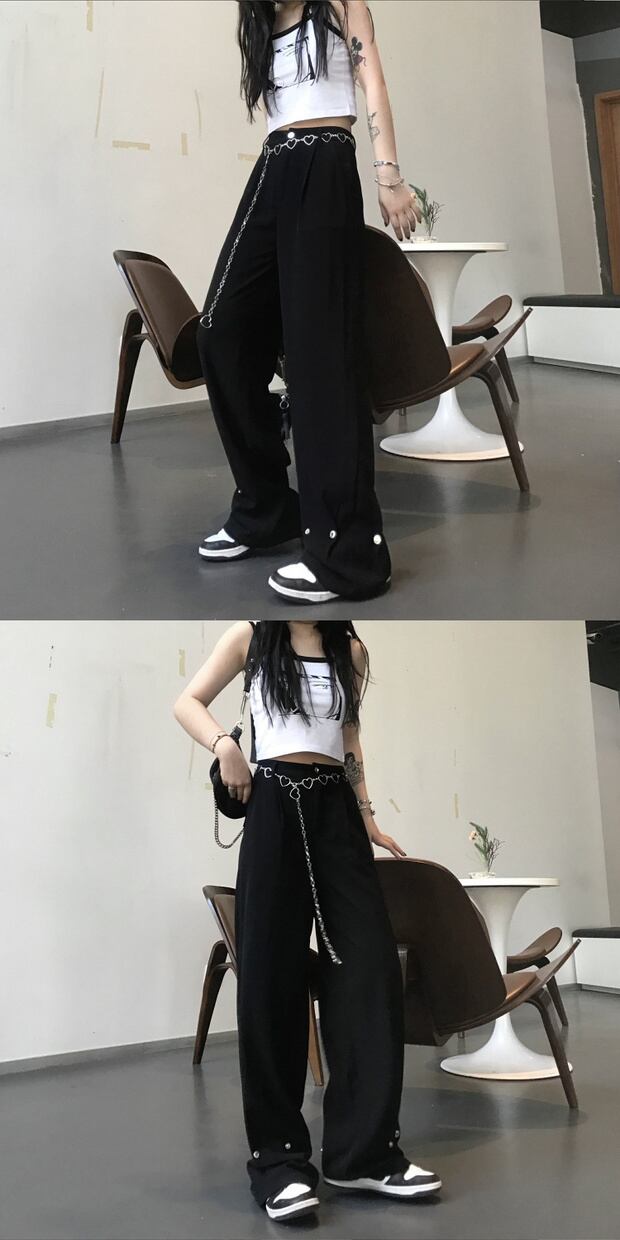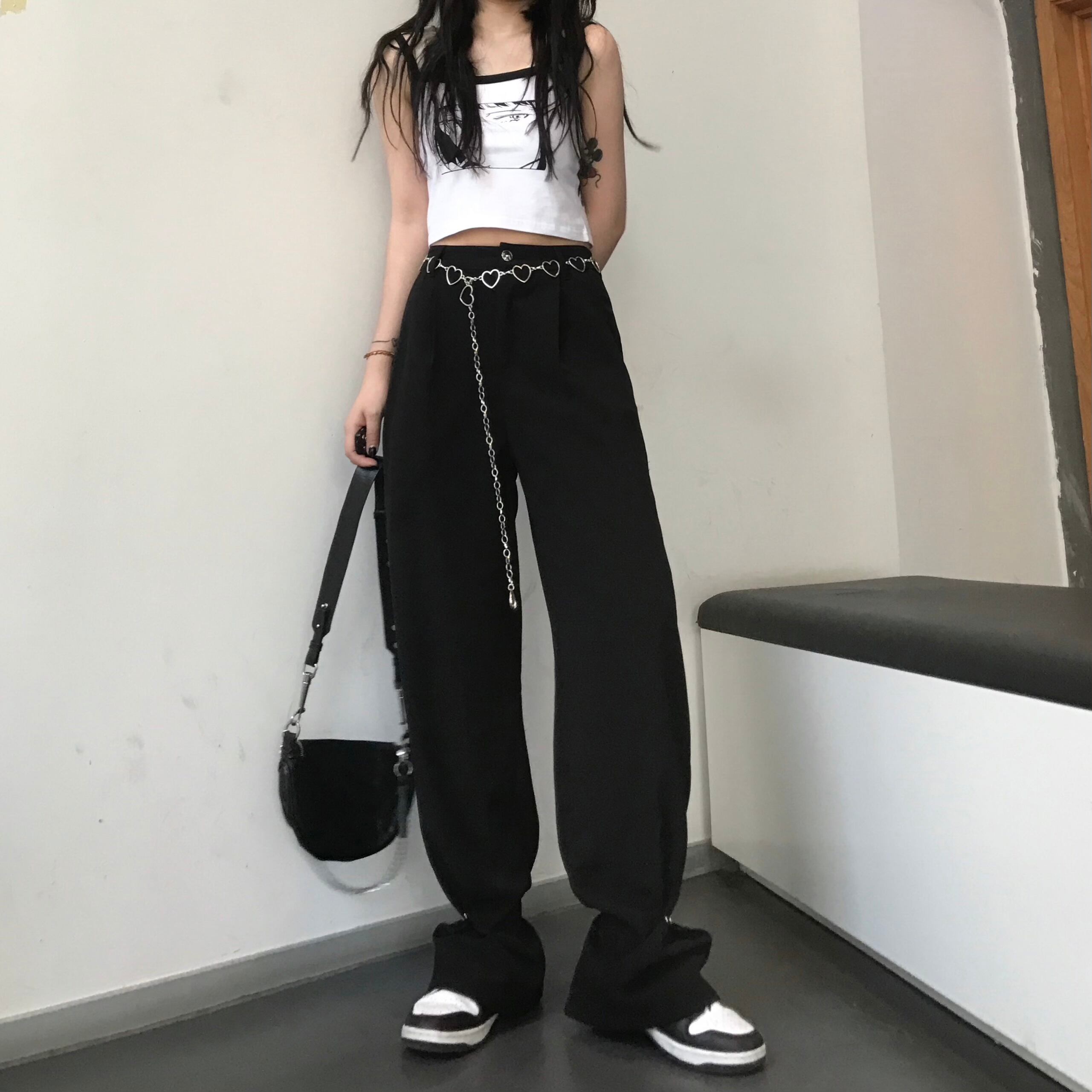 ブラックサマーウェスト薄手パンツ ハイウェストカジュアル 夏物 ケッペル82074800682
