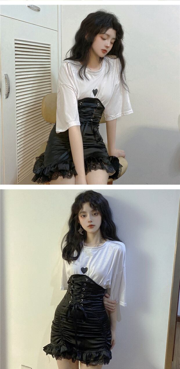 カジュアルレーススカート スタイルハイウェストウェストTシャツ 半袖スリーブ ショート ハーフスリーブ ケッペル82648873601