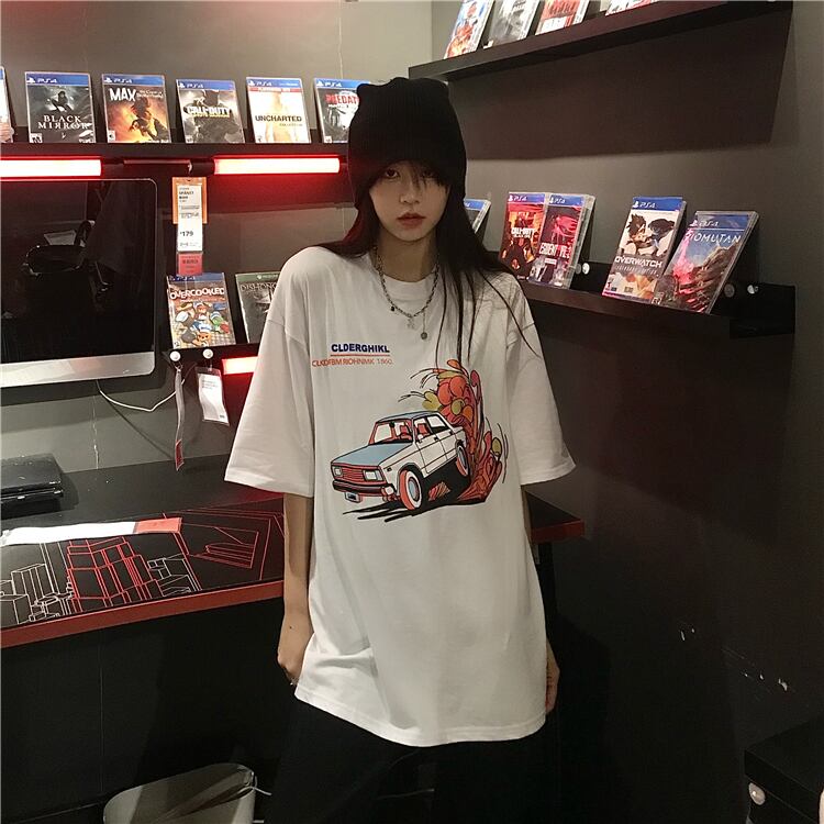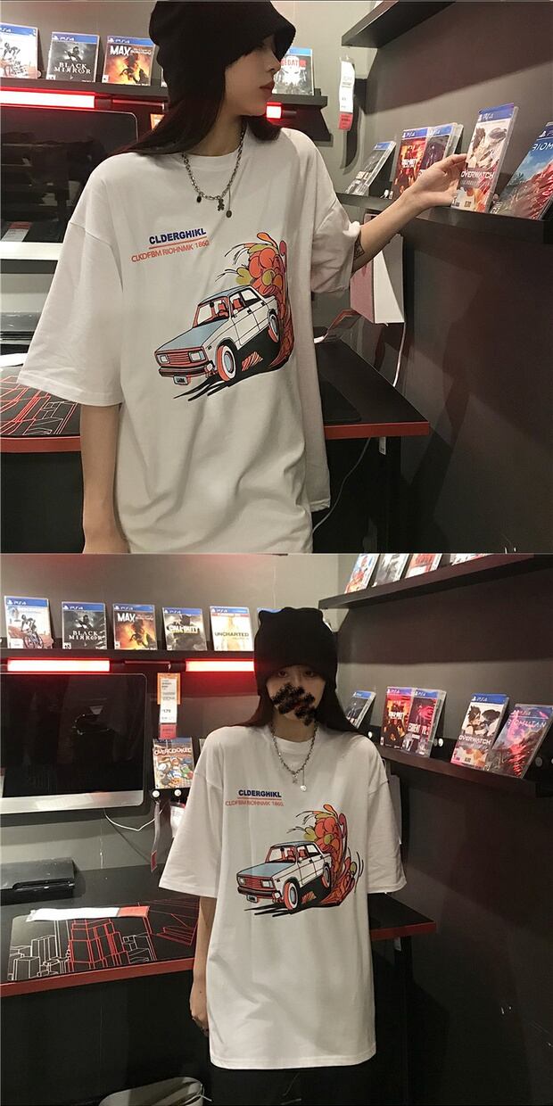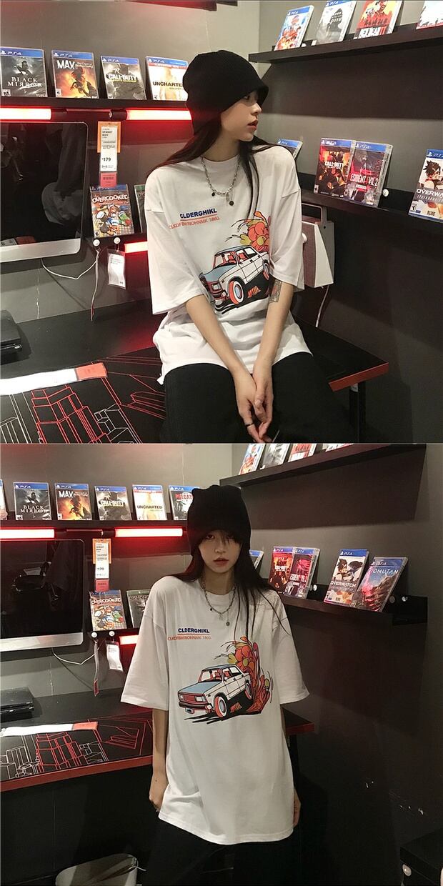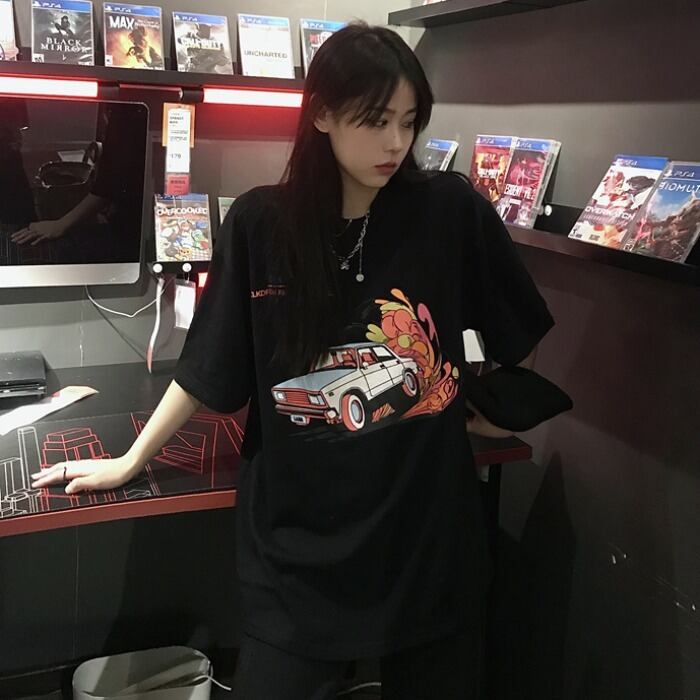 スタイルサマールーズシャツ スタンダードプリントレディースラウンドネックTシャツ レトロ かわいい 夏物 Oネック ケッペル95280012245