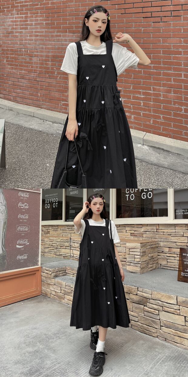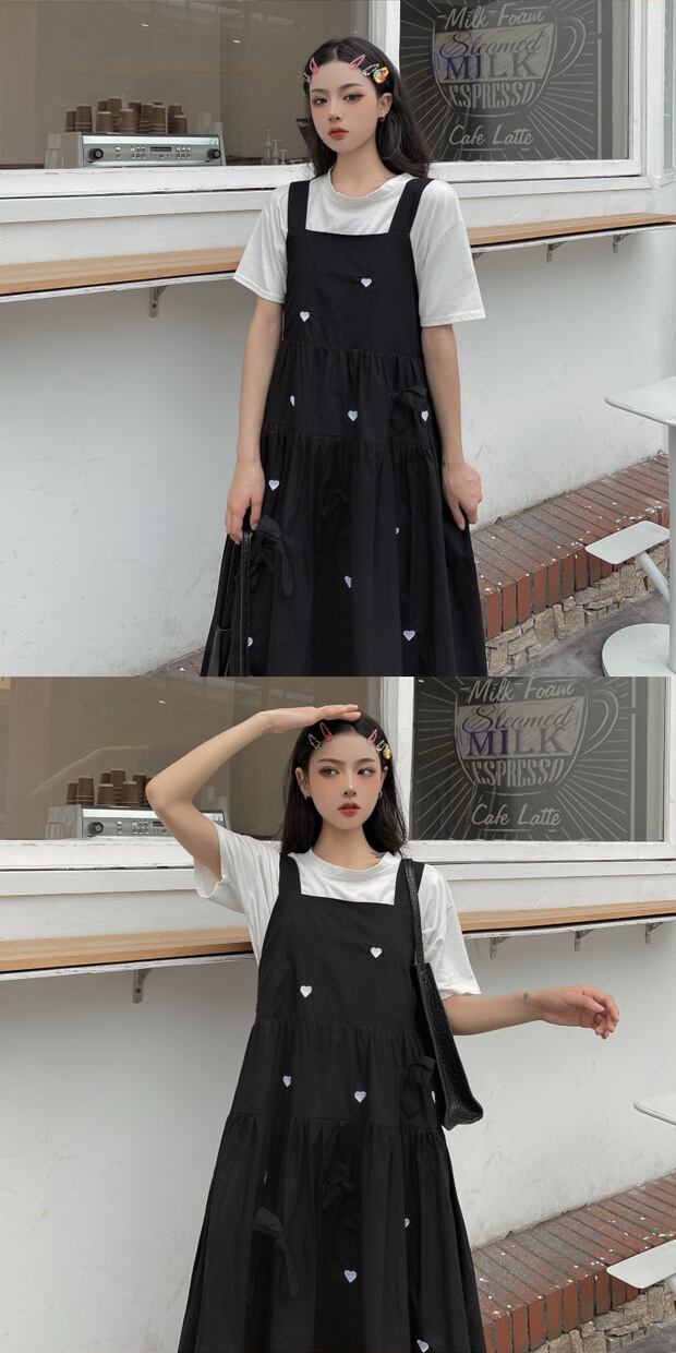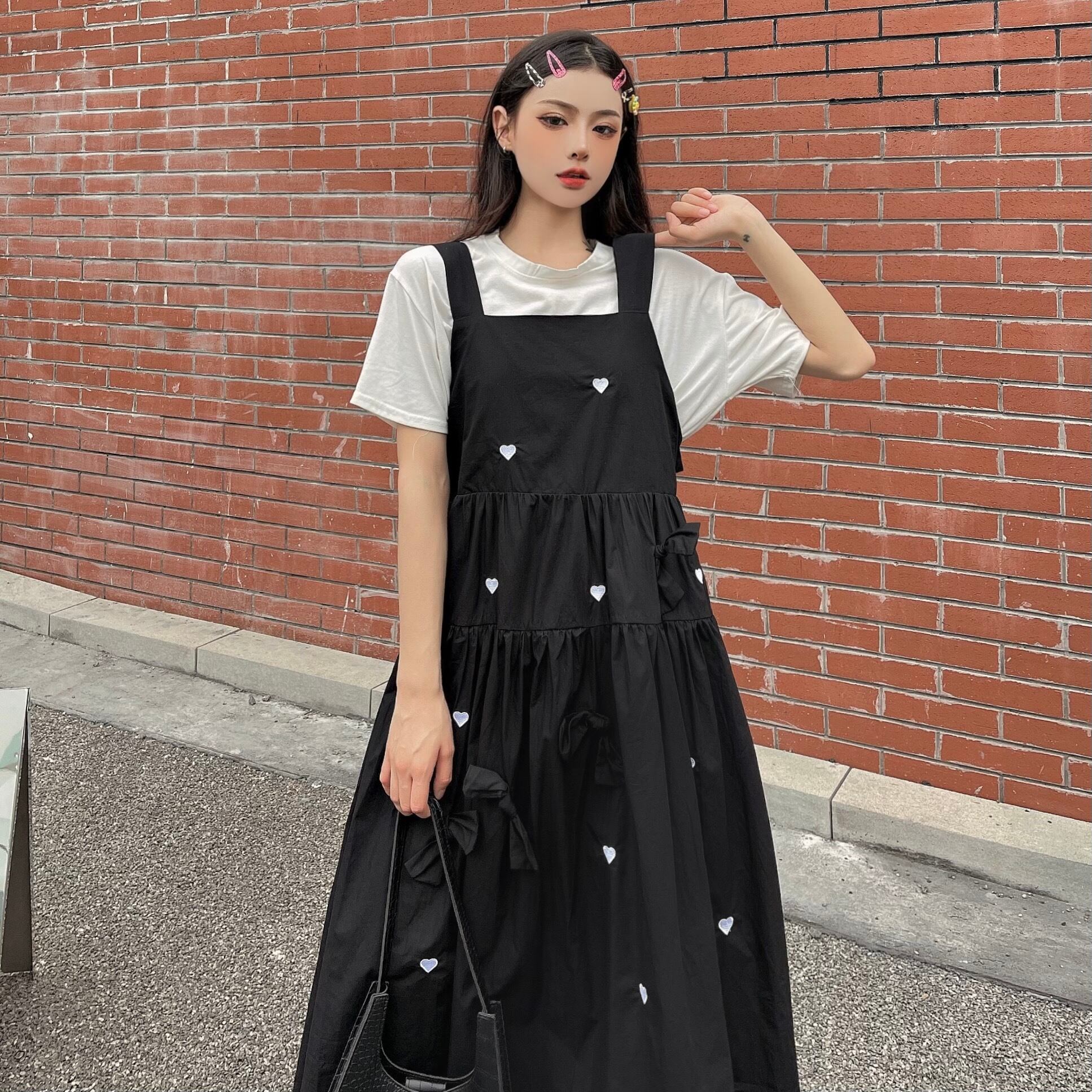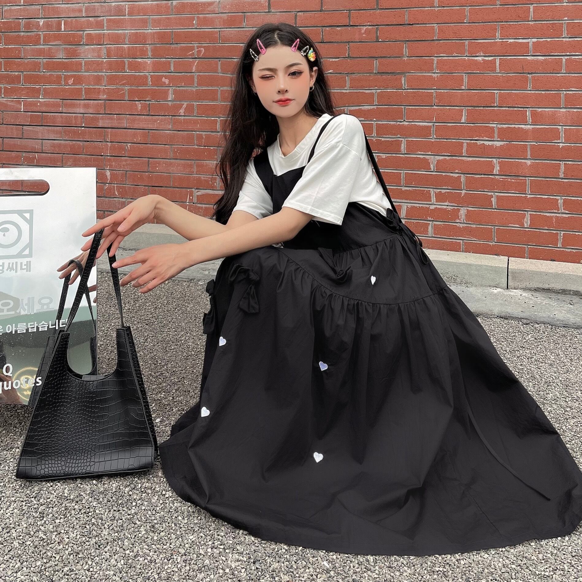 ダークサマーカジュアルロングスカート スタイル刺繍ブラックドレス 夏物 ケッペル96075514742