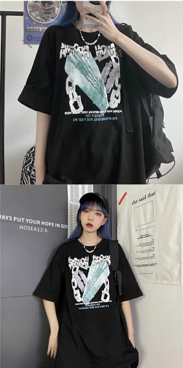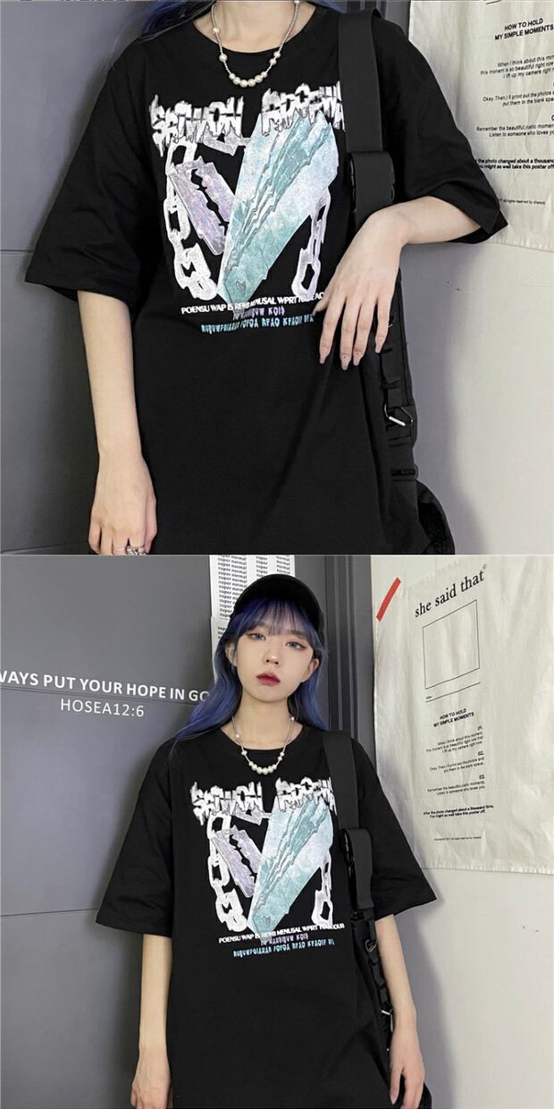サマープリントTシャツ シャツ カジュアルルーズラウンドネック 大きめサイズ かわいい 夏物 Oネック ケッペル79318261500