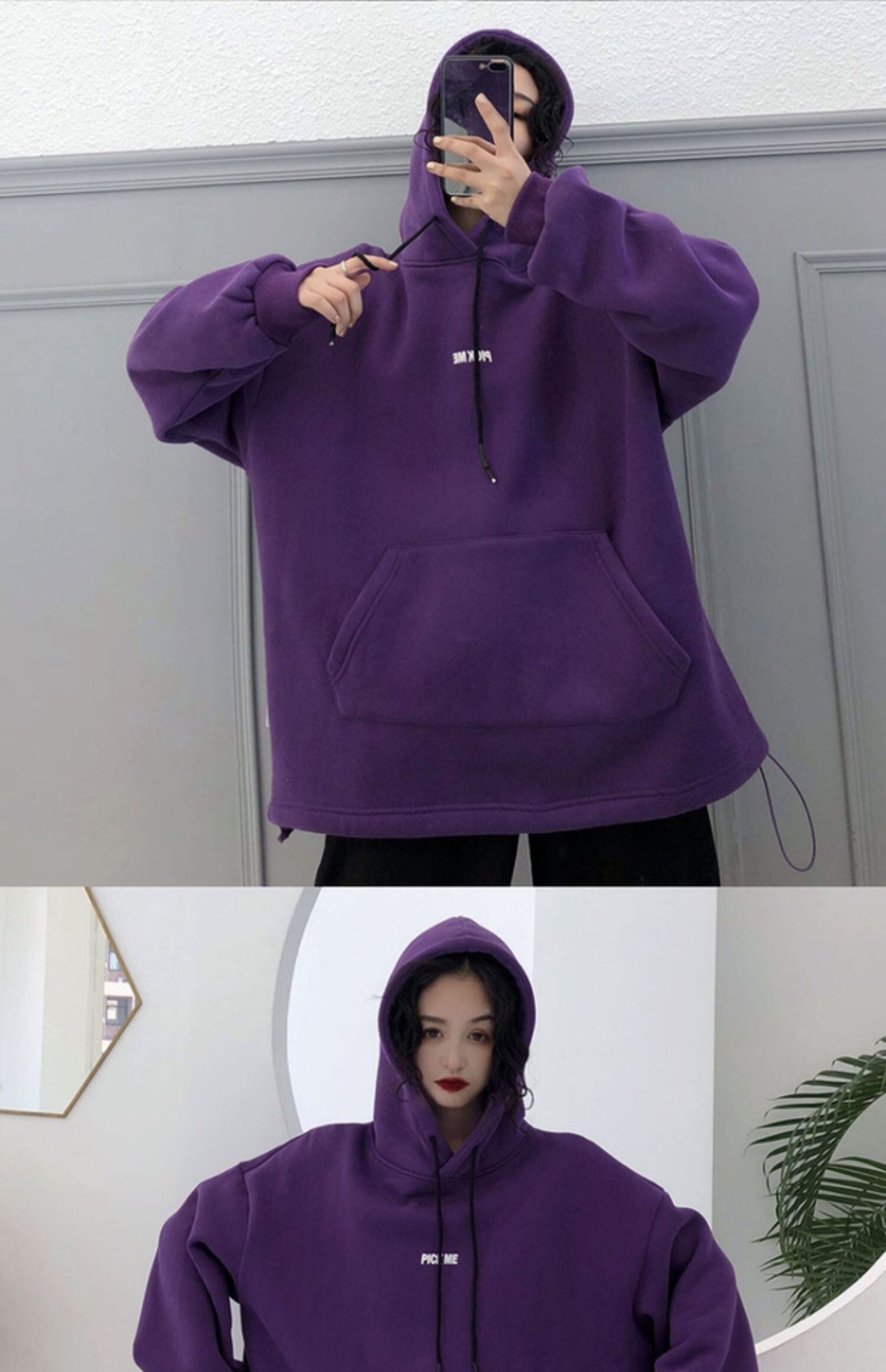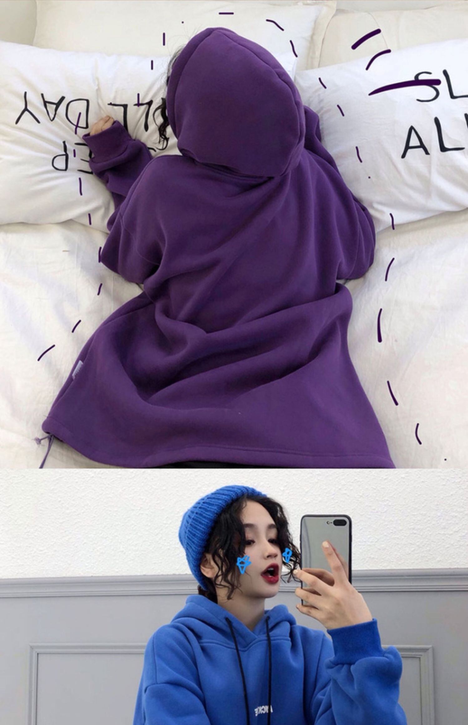 オータムウィンターカラーベルベットセーター カジュアルフードプリントトップス ロング 秋物 冬物 ピュア ケッペル96881849191