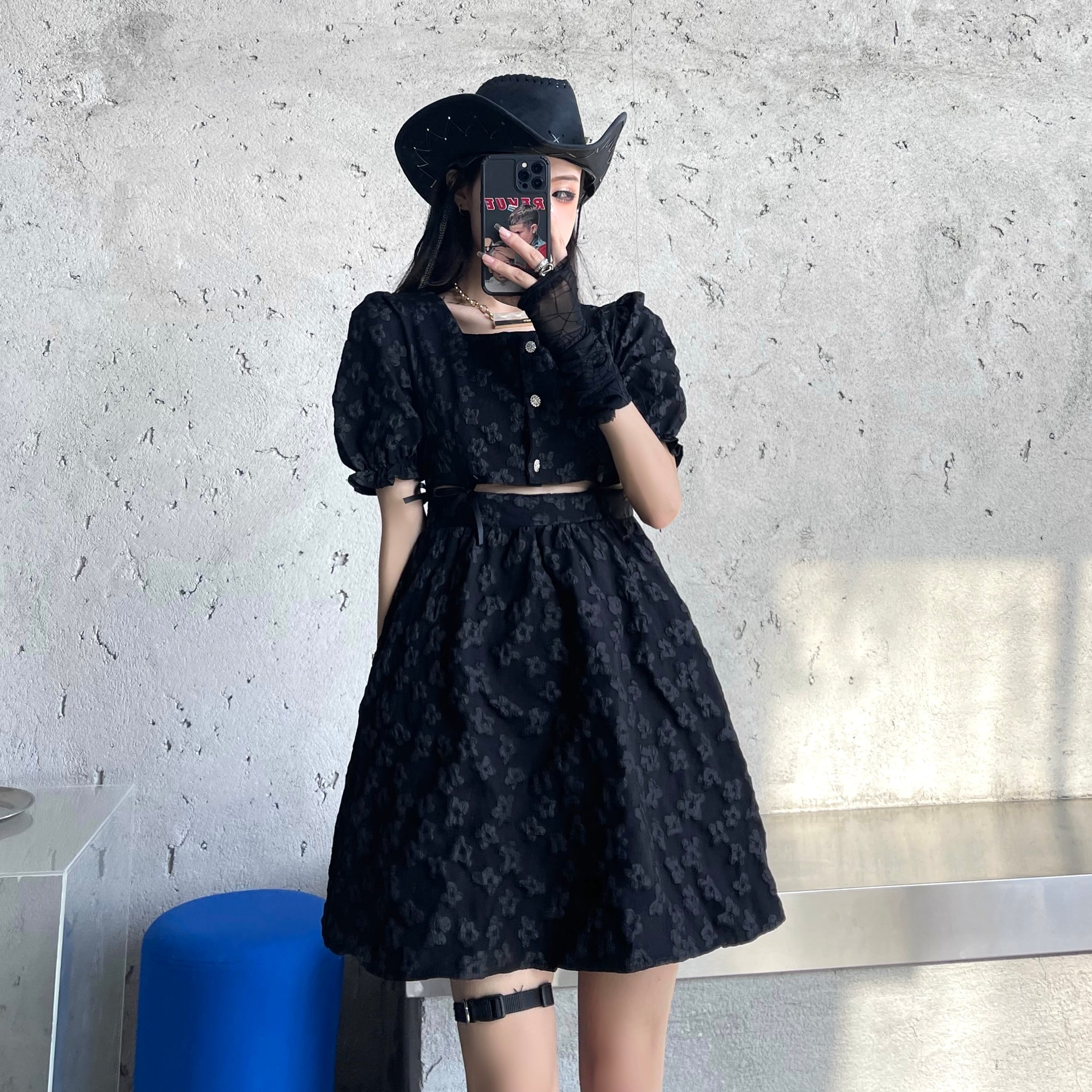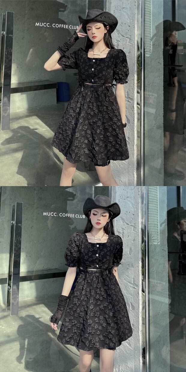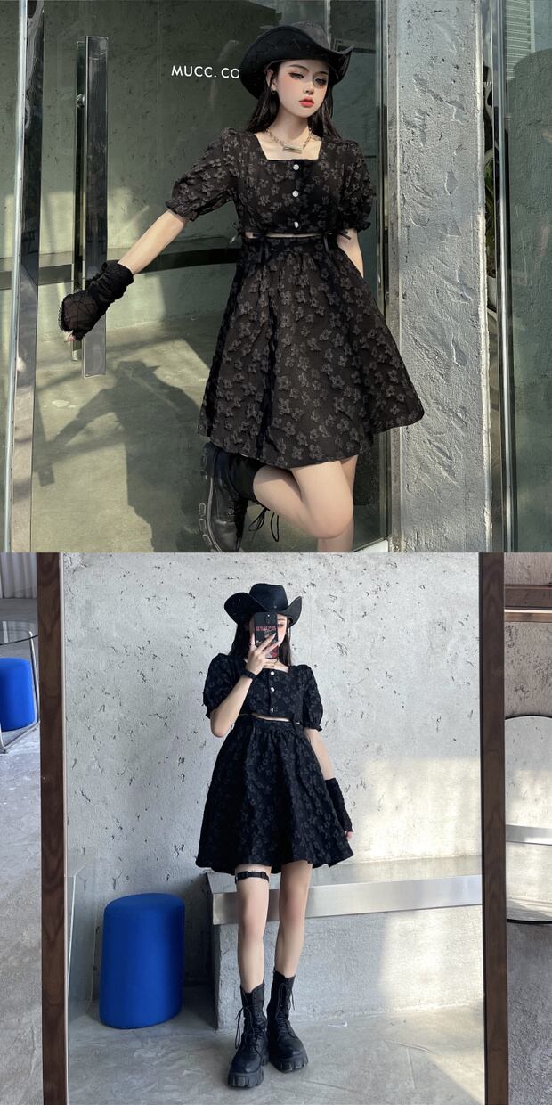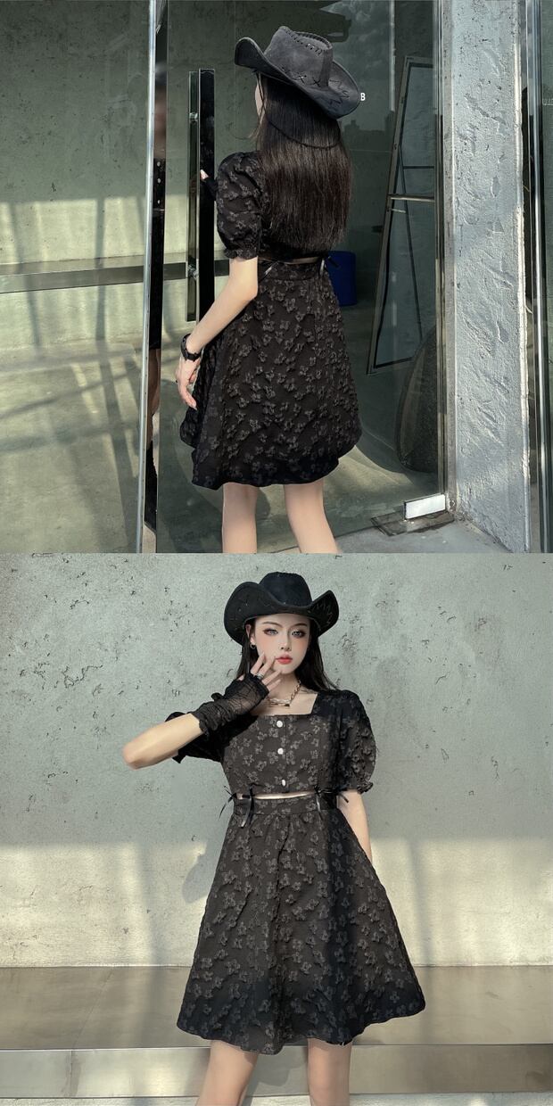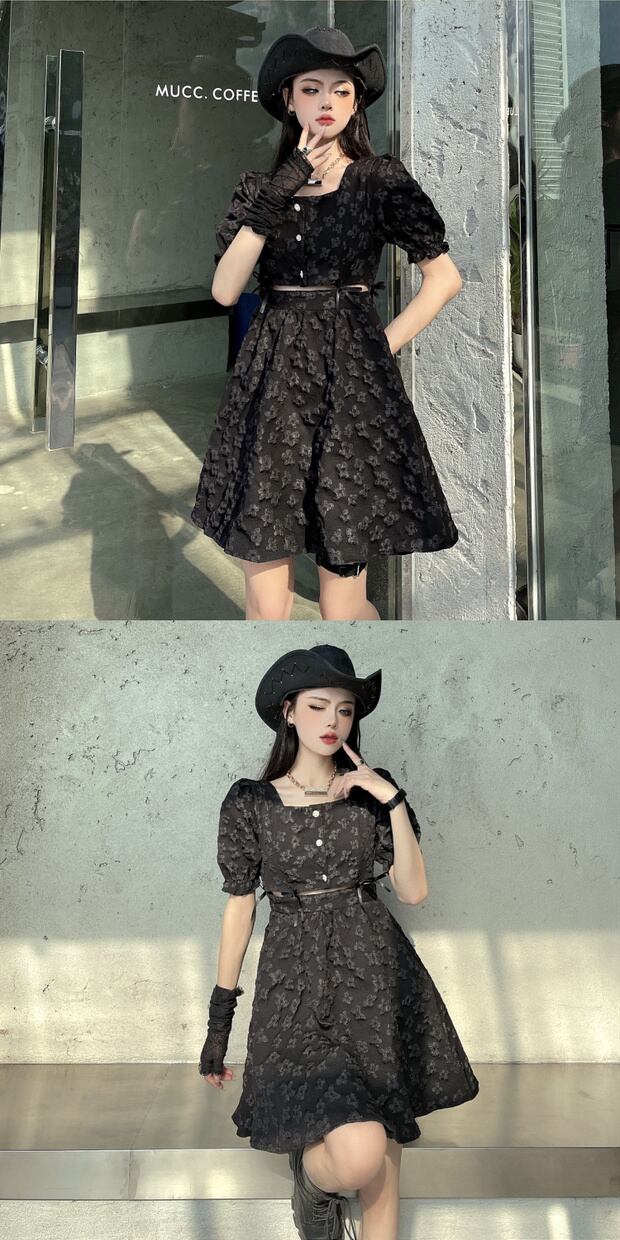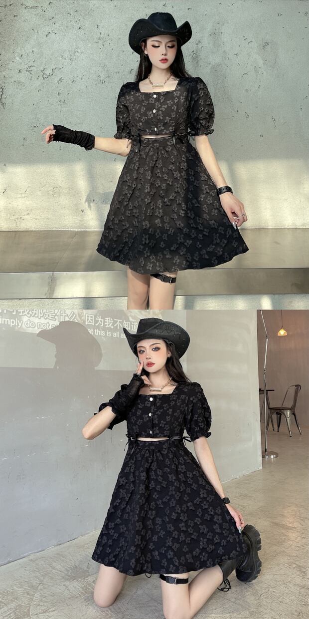 スタンダードショートブラックドレス ウェストジャカードジャンプスーツ オールインワン スカート レトロ ケッペル56103263985
