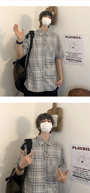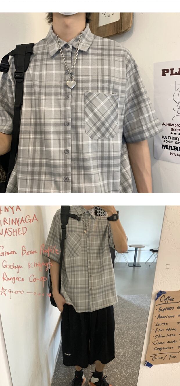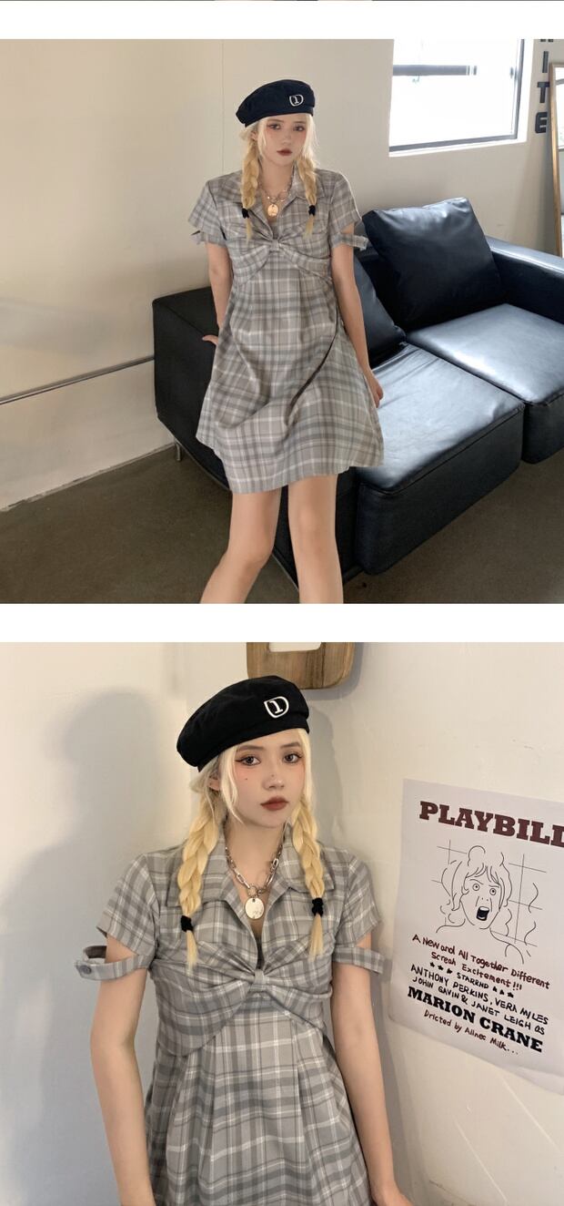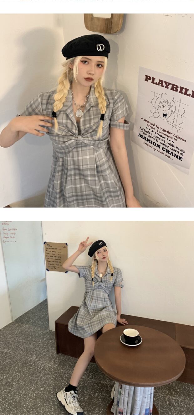 スタンダードシャツ カジュアル格子柄ドレス ルーズトップス レトロ ケッペル59866042425