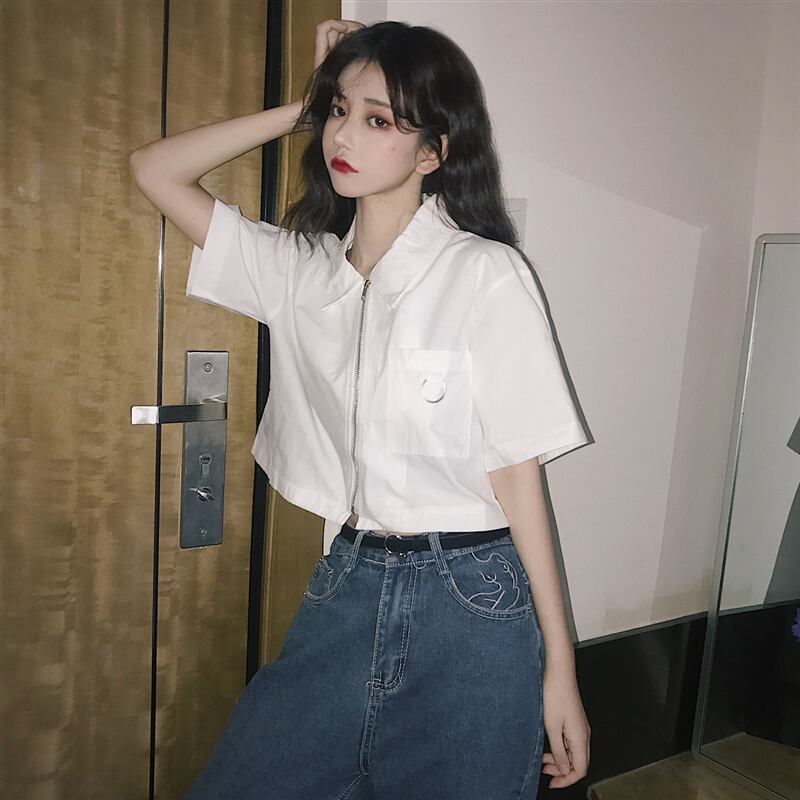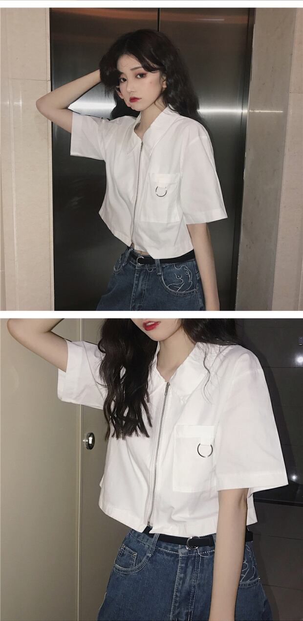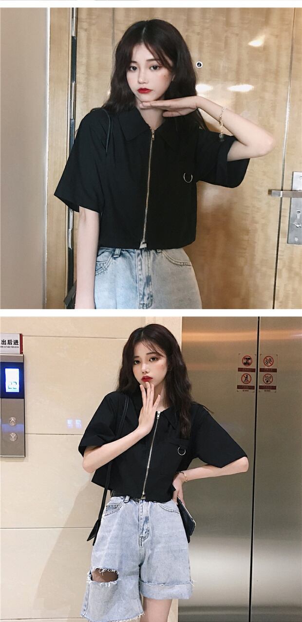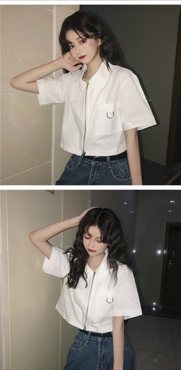 スタイルルーズショートカラージッパーシャツ スリムクロップド ケッペル4941931152