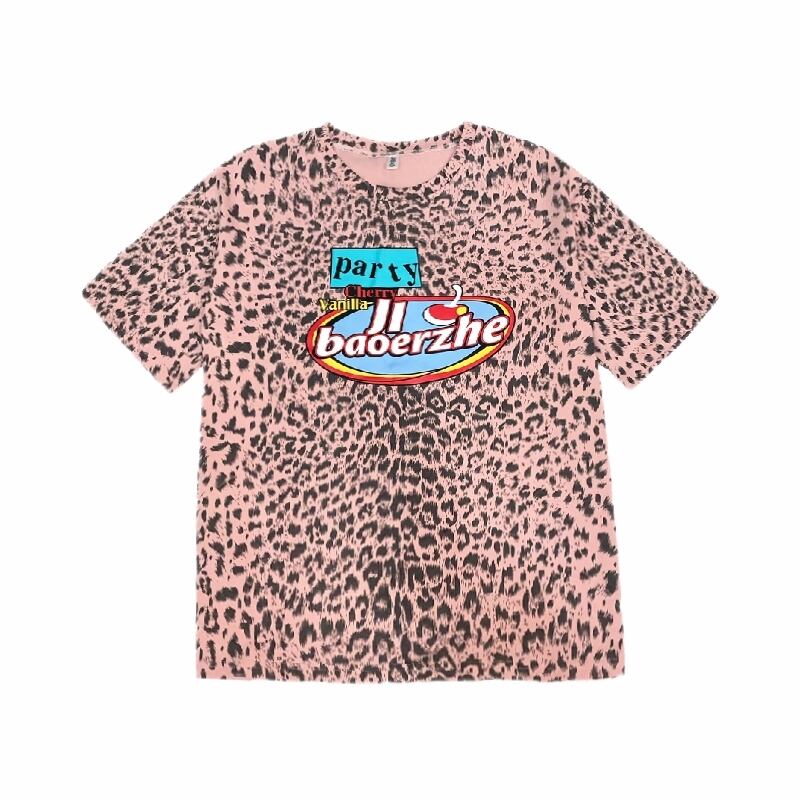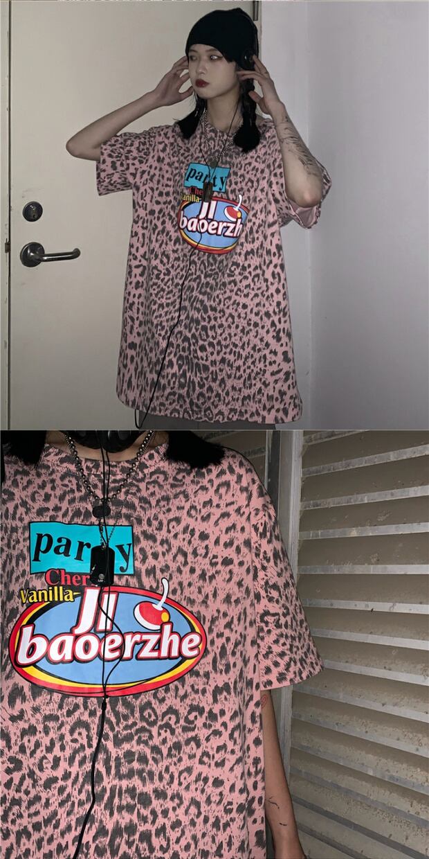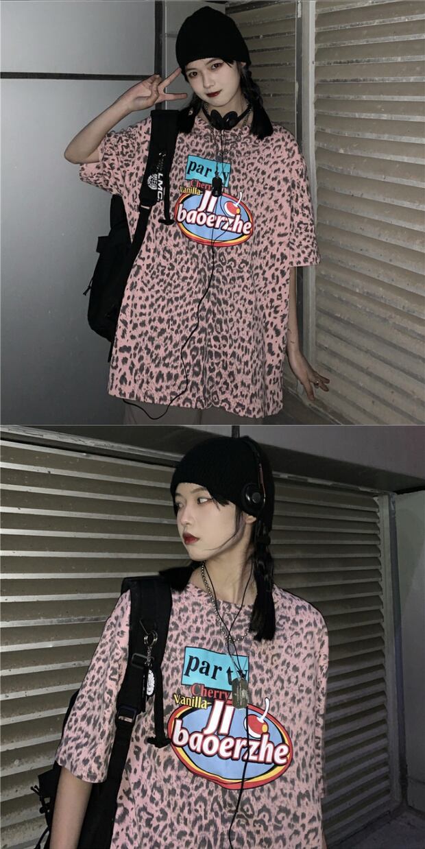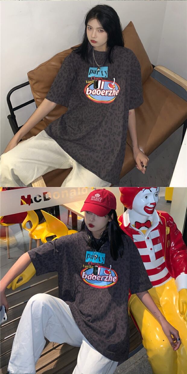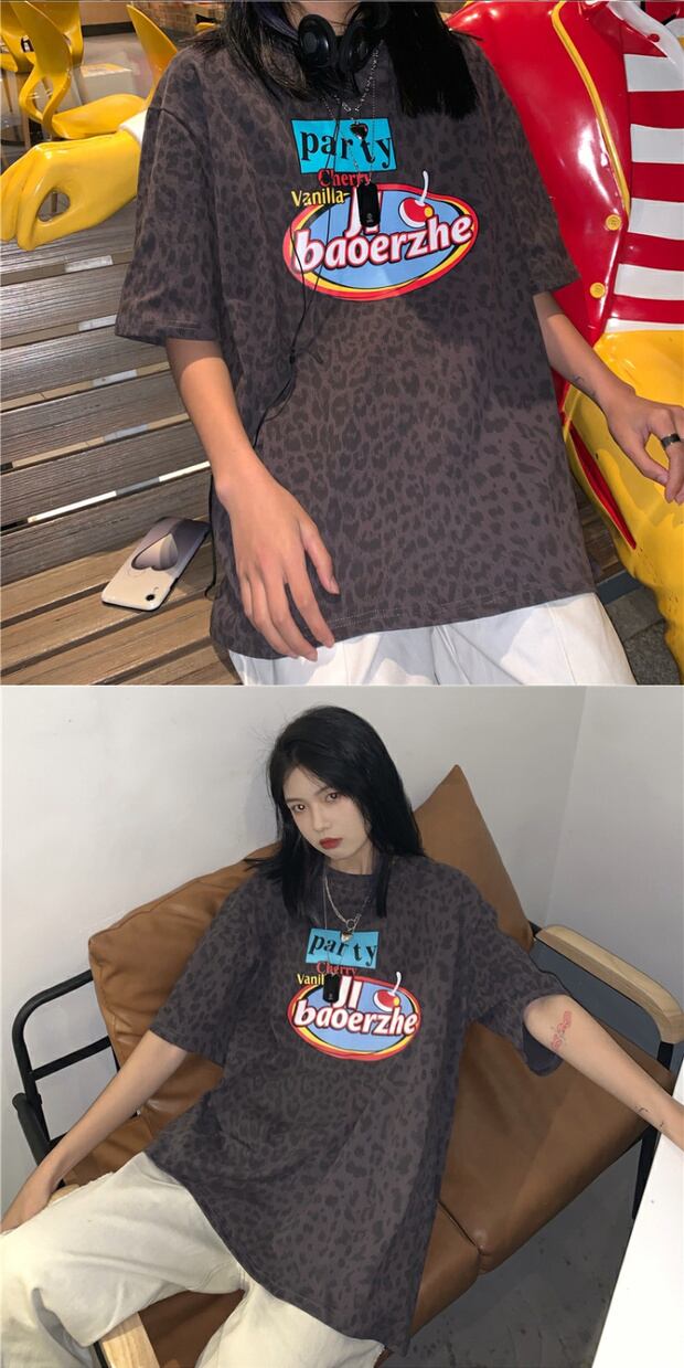 サマールーズレオパードプリント柄プリントTシャツ スタイルラウンドネックトップス ストリート 夏物 Oネック ケッペル74102411939