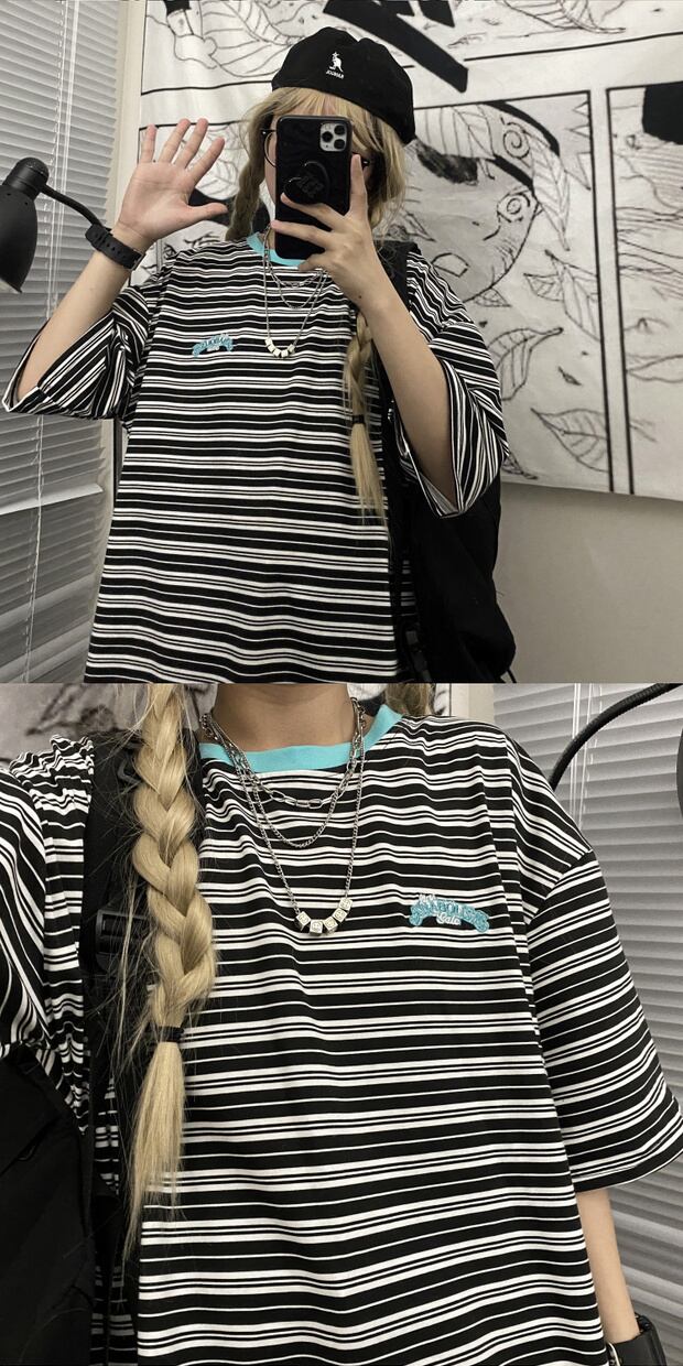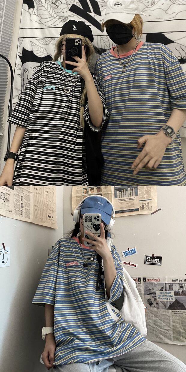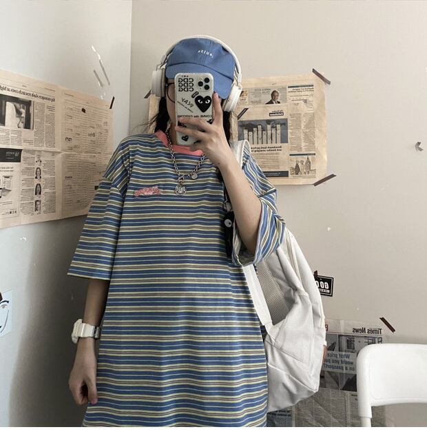 スタイルルーズストライプサマーTシャツ レディーストップス 大きめサイズ かわいい 夏物 ケッペル56496786298