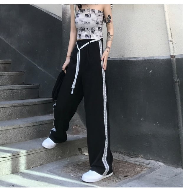 サマーカジュアルパンツ ハイウェストギャザーレース 夏物 ステッチ ケッペル60155294232