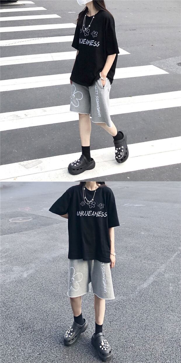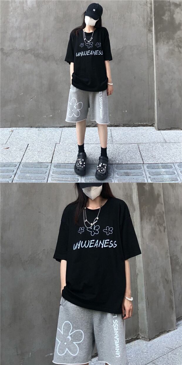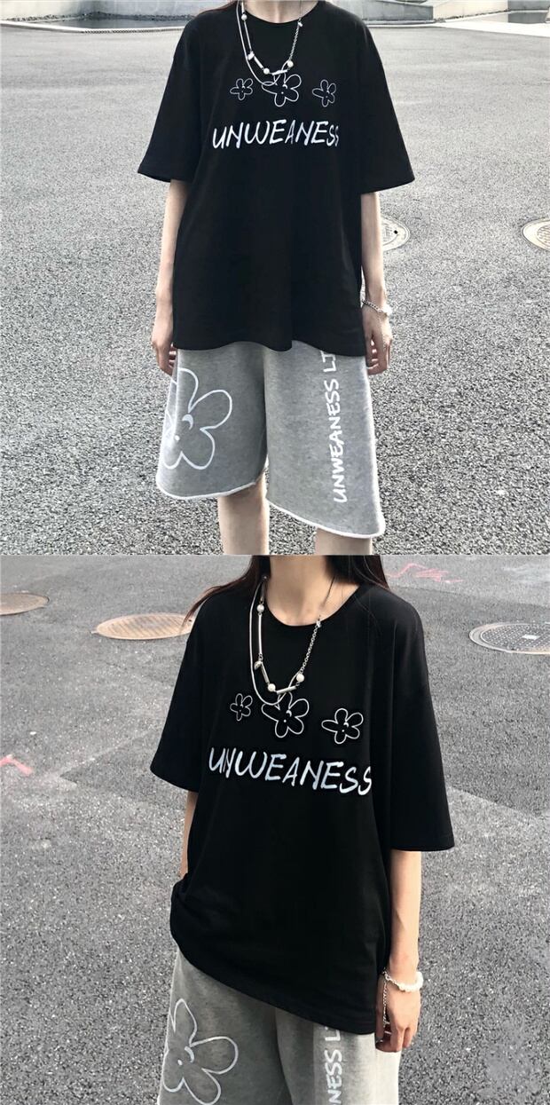 ラウンドネックルーズシャツ スタイルサマープリントTシャツ コットン 夏物 Oネック ピュア ケッペル75231355343