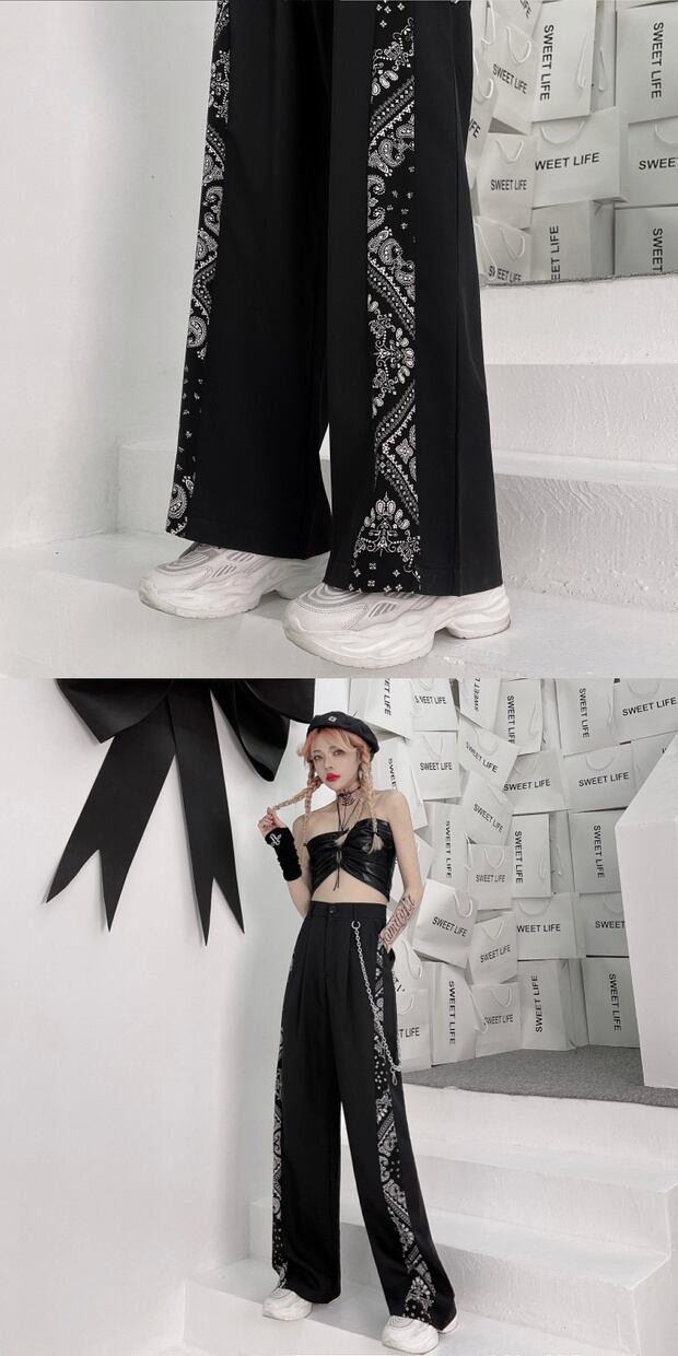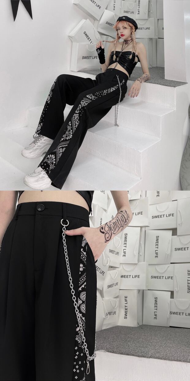 ダークサマーカジュアルパンツ カラーFlowerデザイン ハイウェスト かわいい 夏物 フラワーデザイン ステッチ ケッペル24834592633