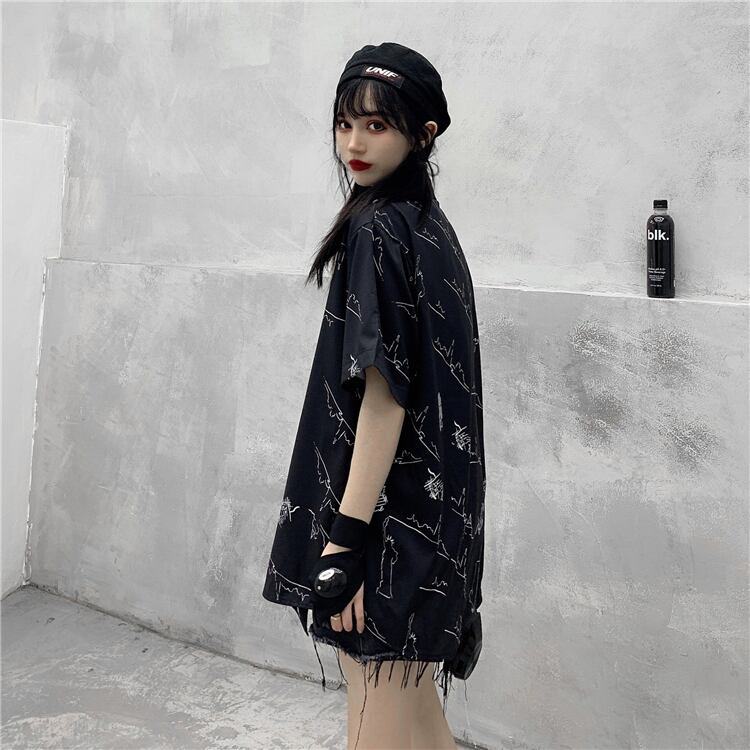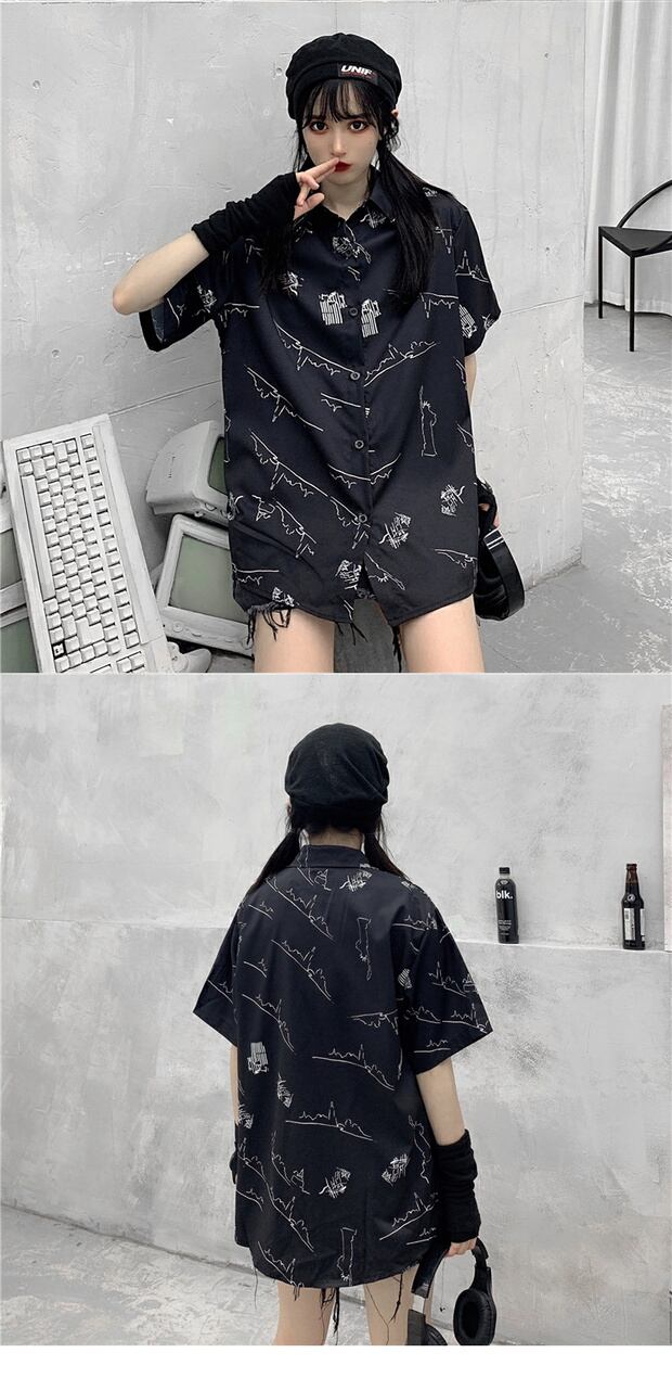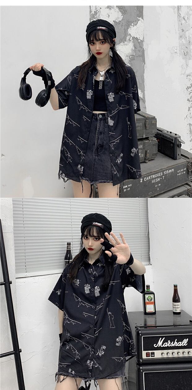 ダークルーズカジュアルサマープリントシャツ スタンダード レトロ 夏物 ケッペル18639208448