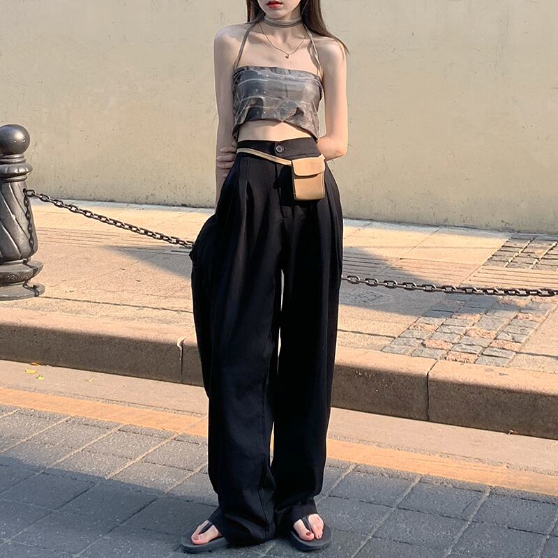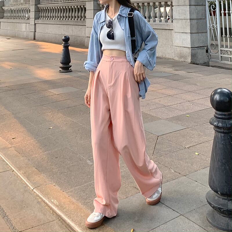 ワイドレッグパンツ ストレッチハイウェストウェストサマールーズ薄手 エラスティック 伸縮 夏物 ワイドパンツ ケッペル4080322838