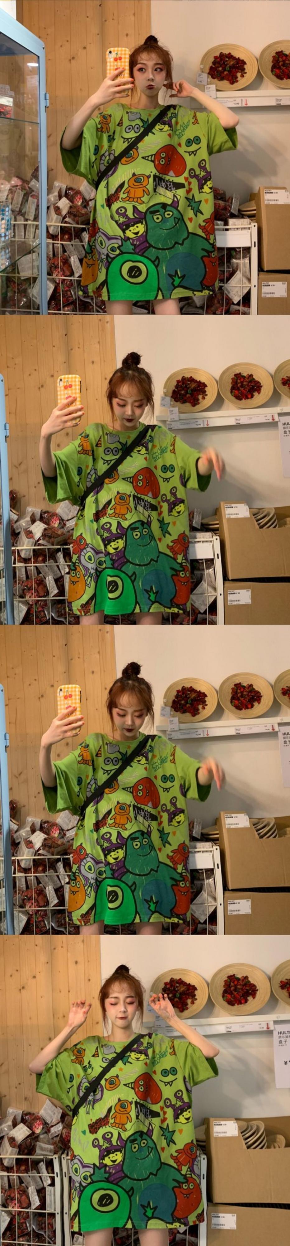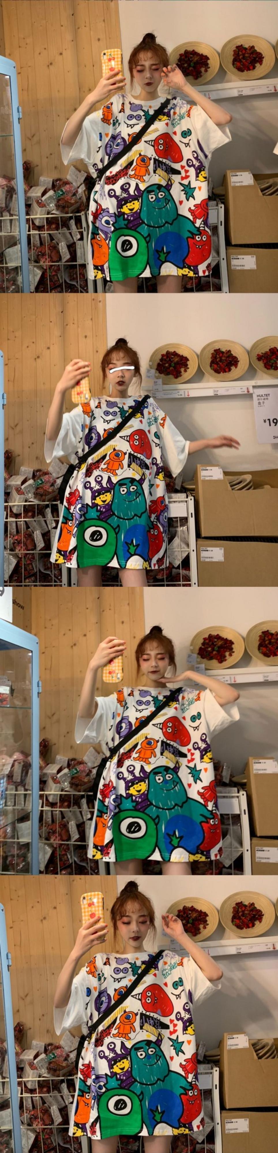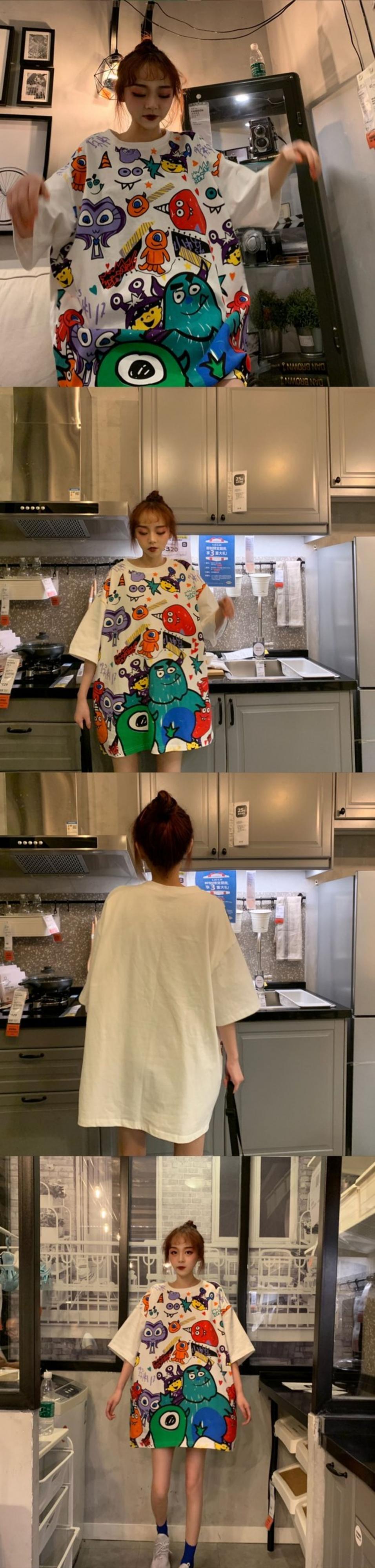ルーズサマーオータムシャツ ラウンドネックTシャツ 大きめサイズ 大人ガーリー スウィート キュート カジュアル 夏物 秋物 Oネック ケッペル62333635474