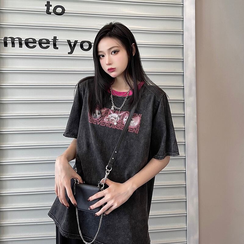 サマーショートTシャツ ルーズロングトップス カジュアル 大きめサイズ 夏物 ケッペル9328234330