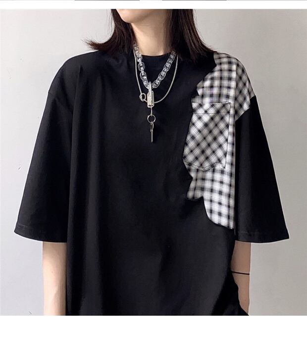 スタイルサマールーズダークカジュアルTシャツ トップス かわいい 夏物 ステッチ ケッペル58237769032