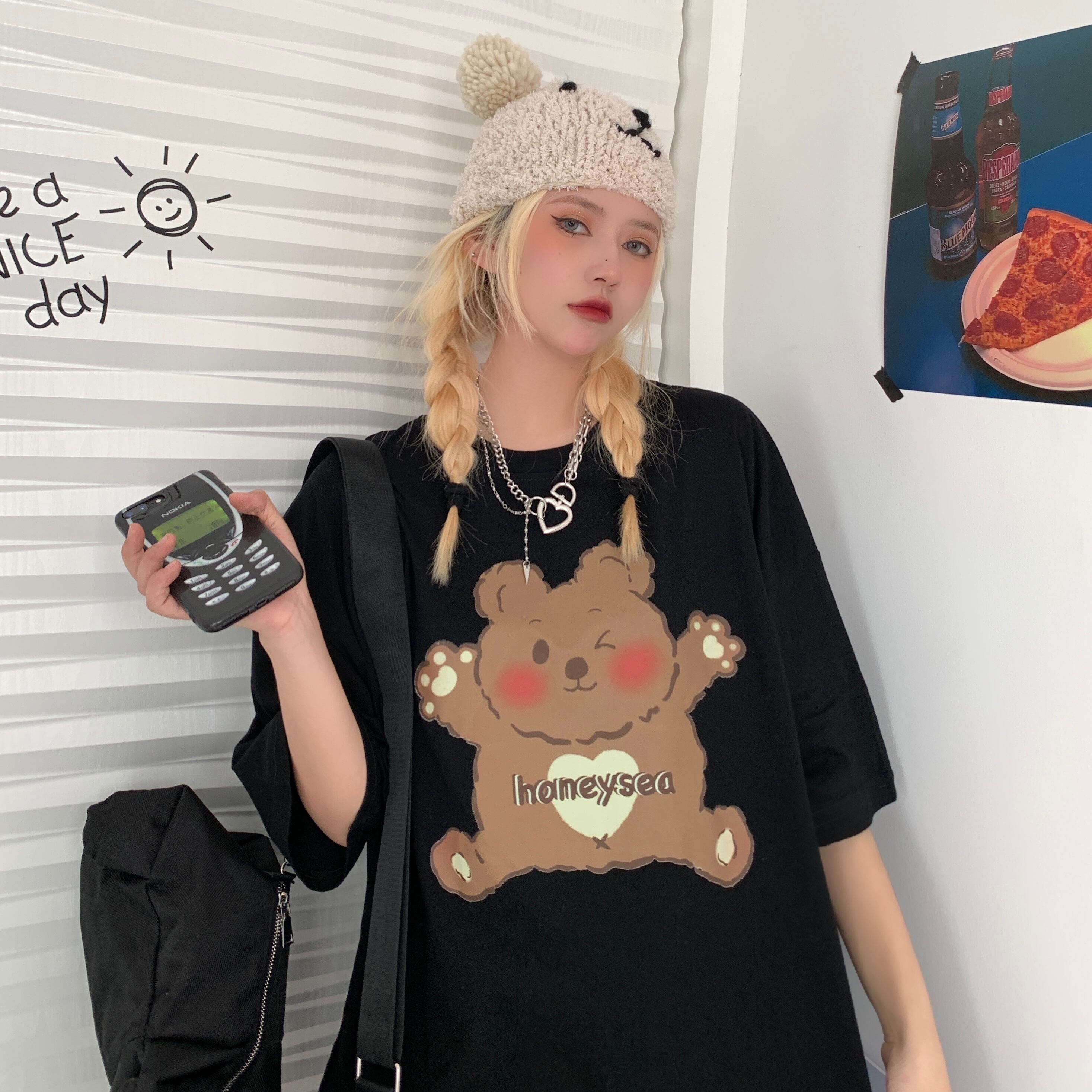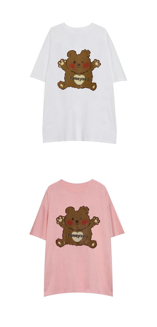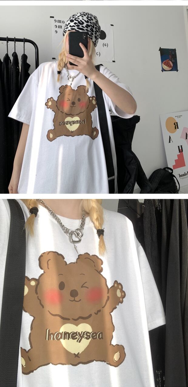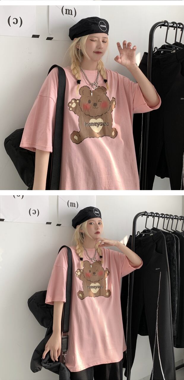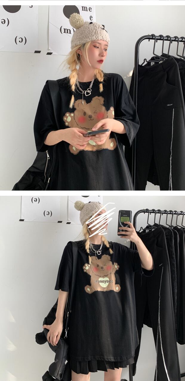 プリント柄スタイルロングカジュアルTシャツ ルーズトップス 大きめサイズ かわいい ケッペル5741244741