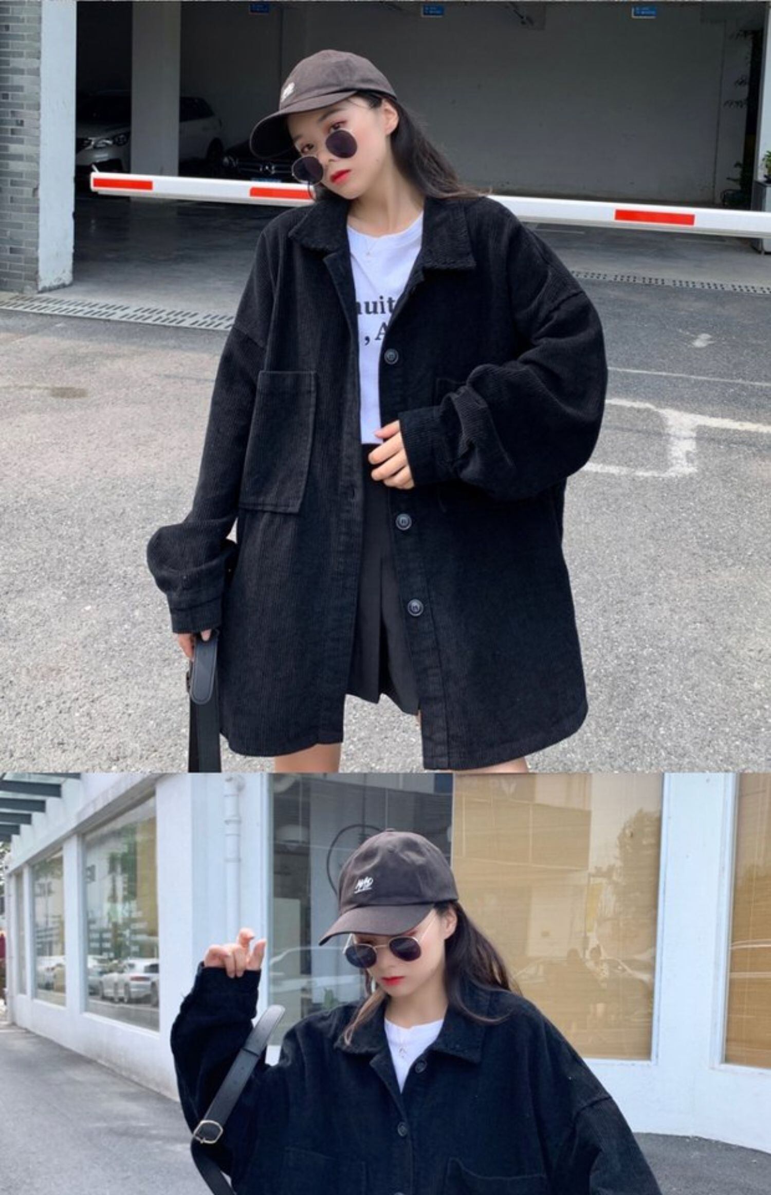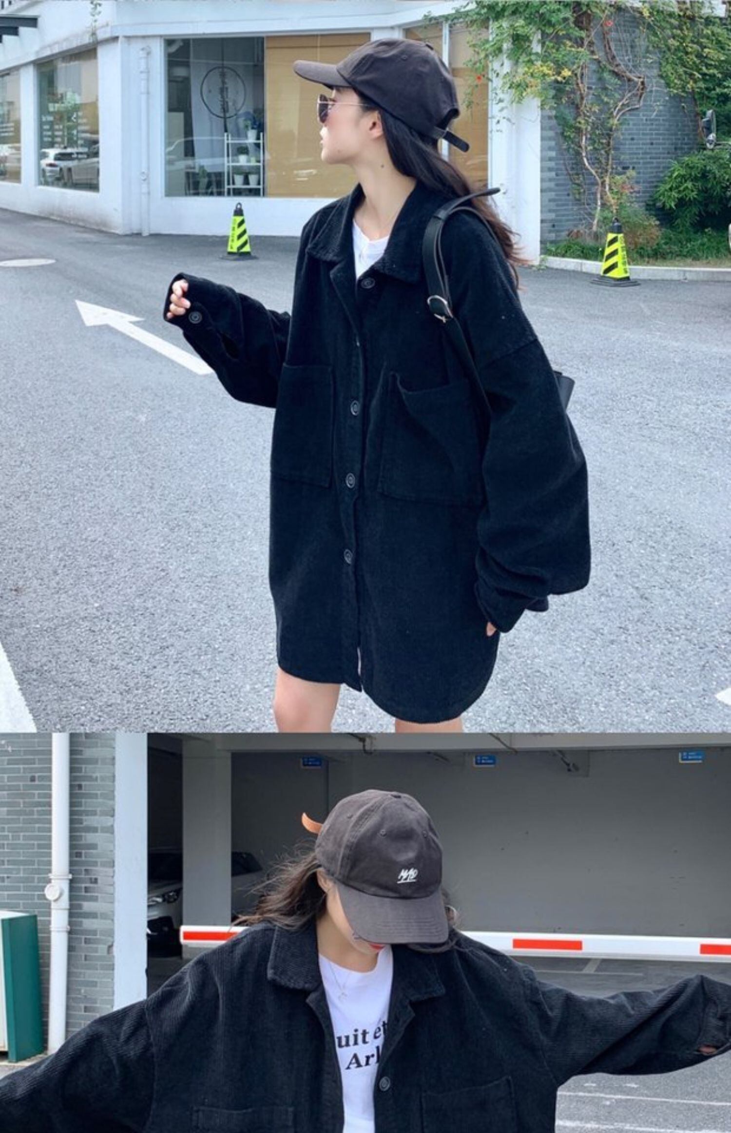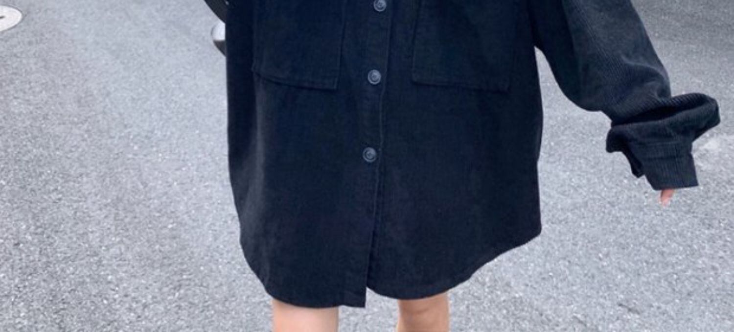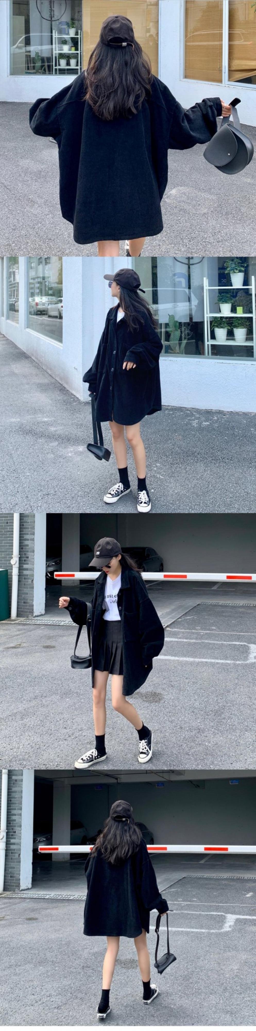 ブラックコーデュロイシャツ オータムルーズスタイルジャケット ロング 秋物 ケッペル16857655272