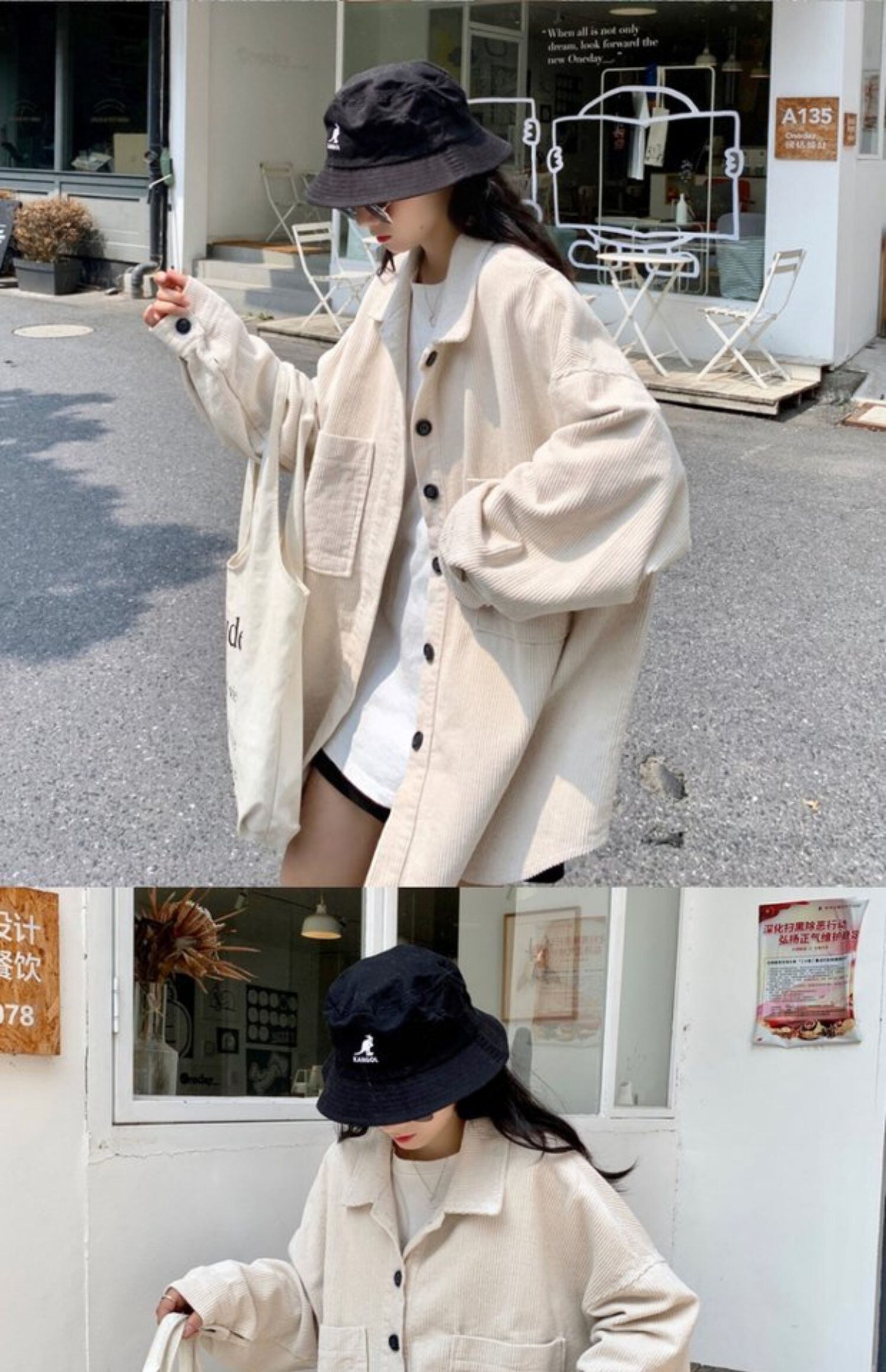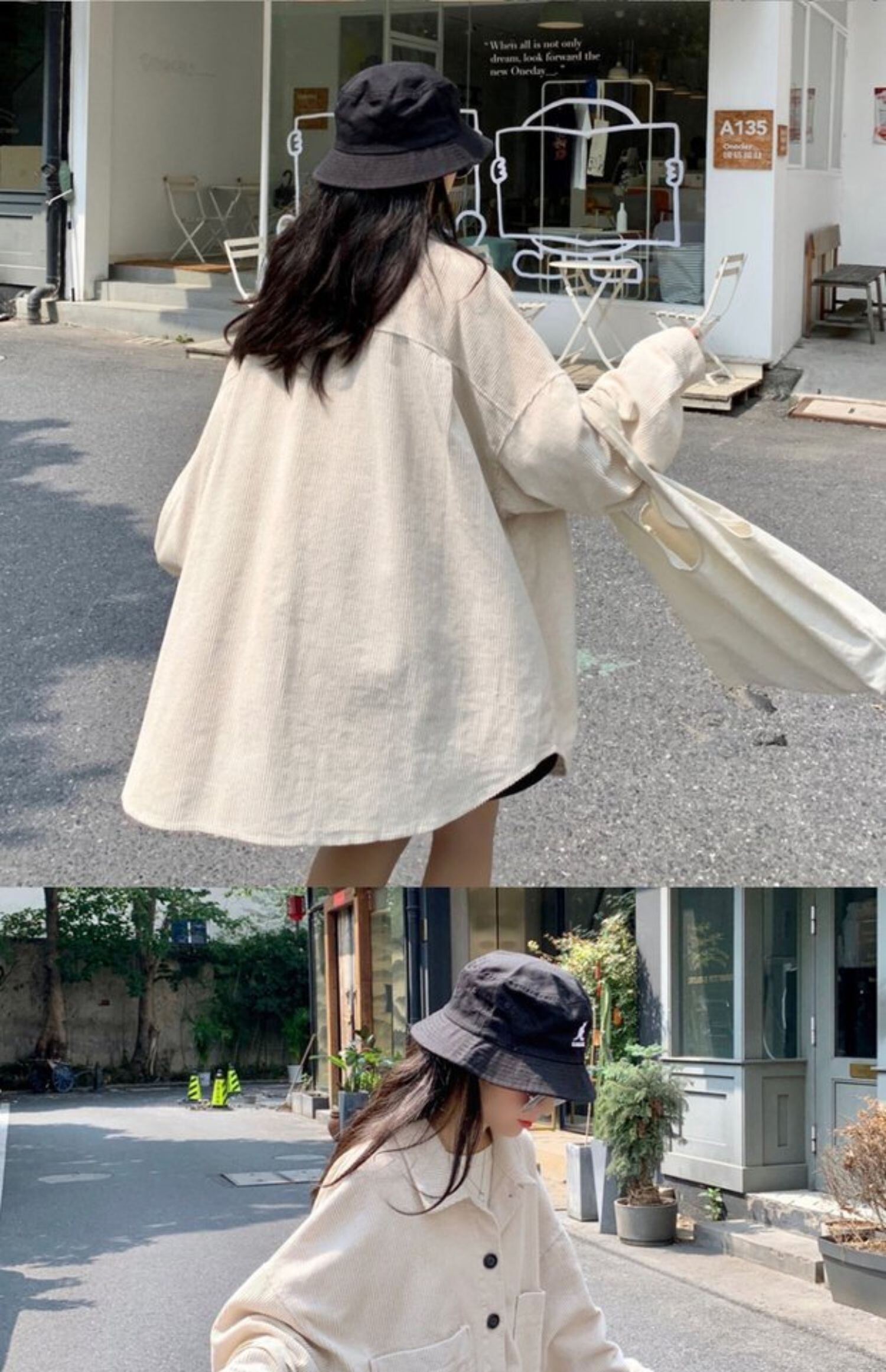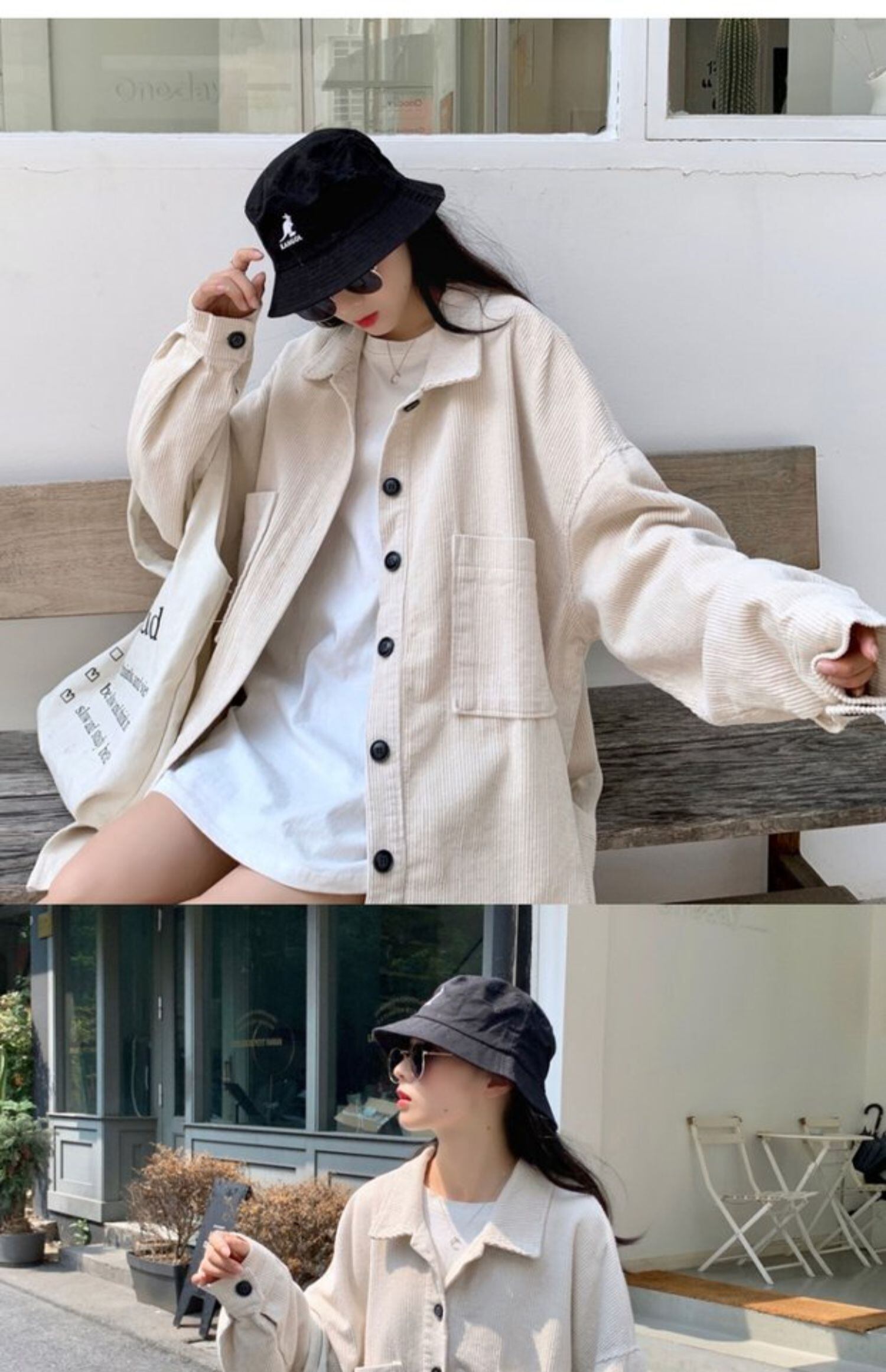 ブラックコーデュロイシャツ オータムルーズスタイルジャケット ロング 秋物 ケッペル16857655272