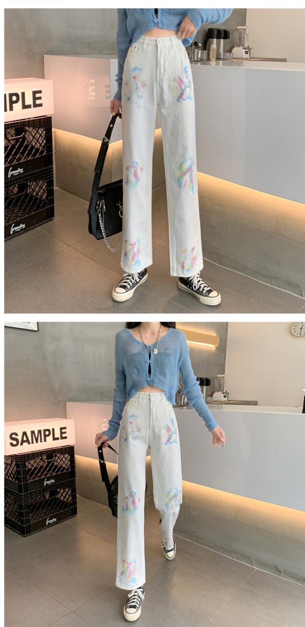 スプリングサマースタンダードジーンズ ハイウェストウェストルーズパンツ レトロ 春物 夏物 ケッペル550984597