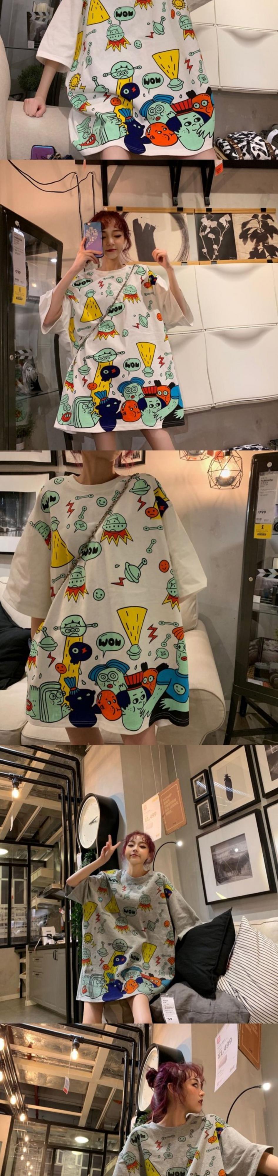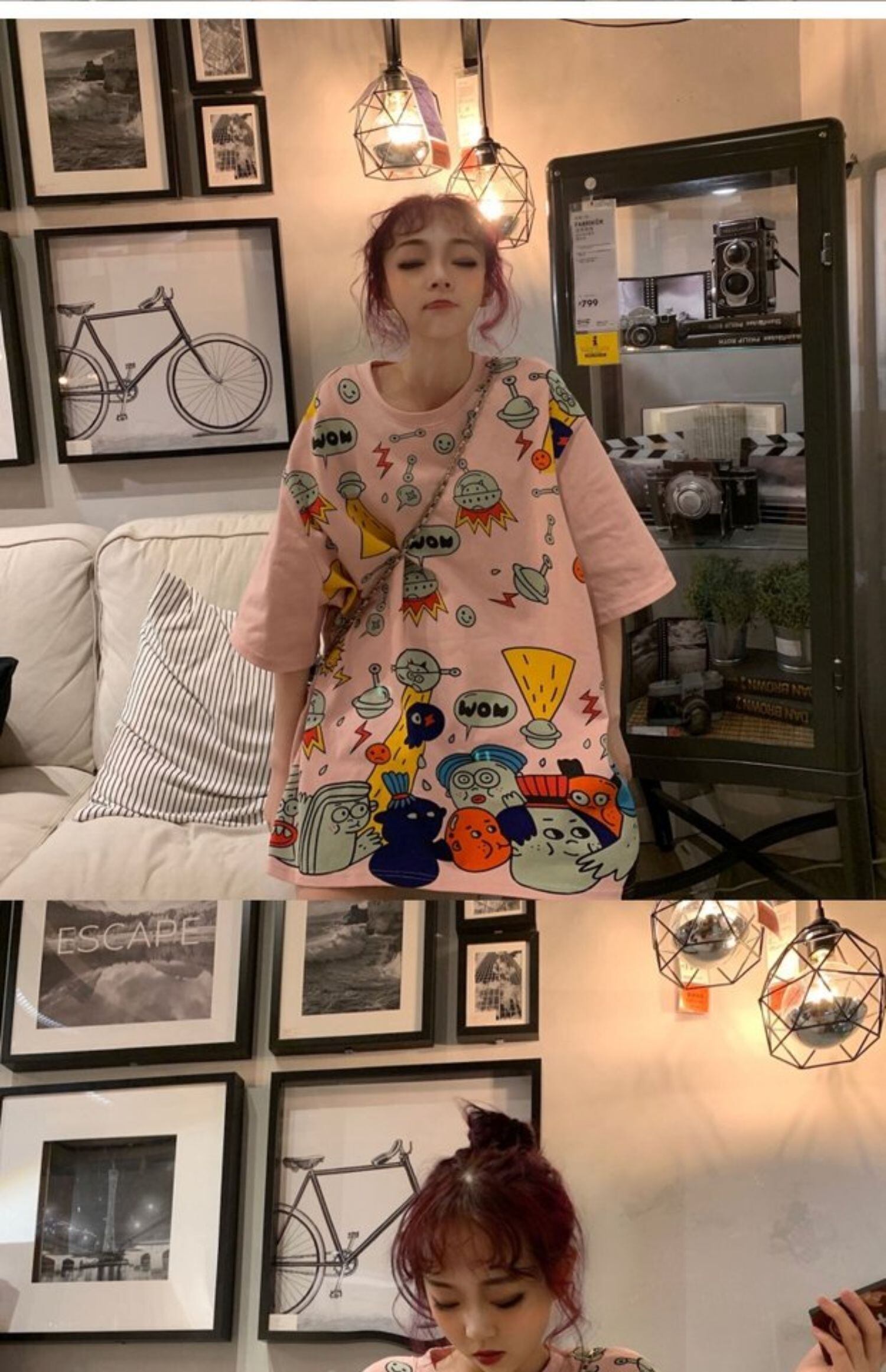 ラウンドネックプリントTシャツ スプリングサマースタイルルーズトップス 大きめサイズ かわいい 春物 夏物 Oネック ケッペル45631603958