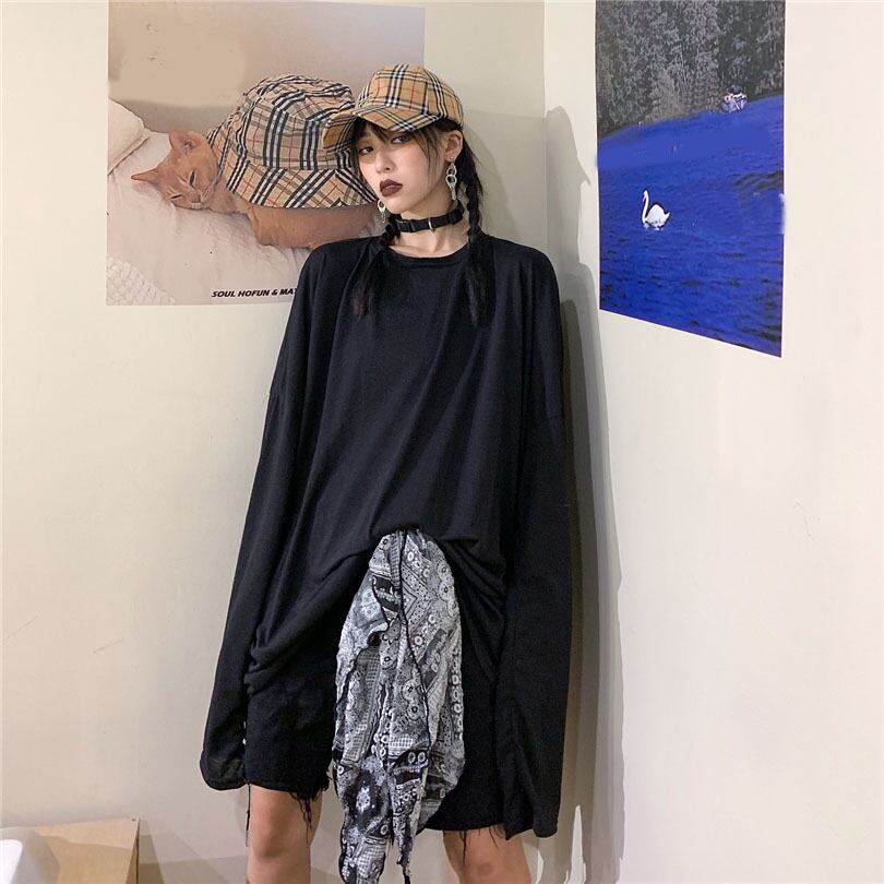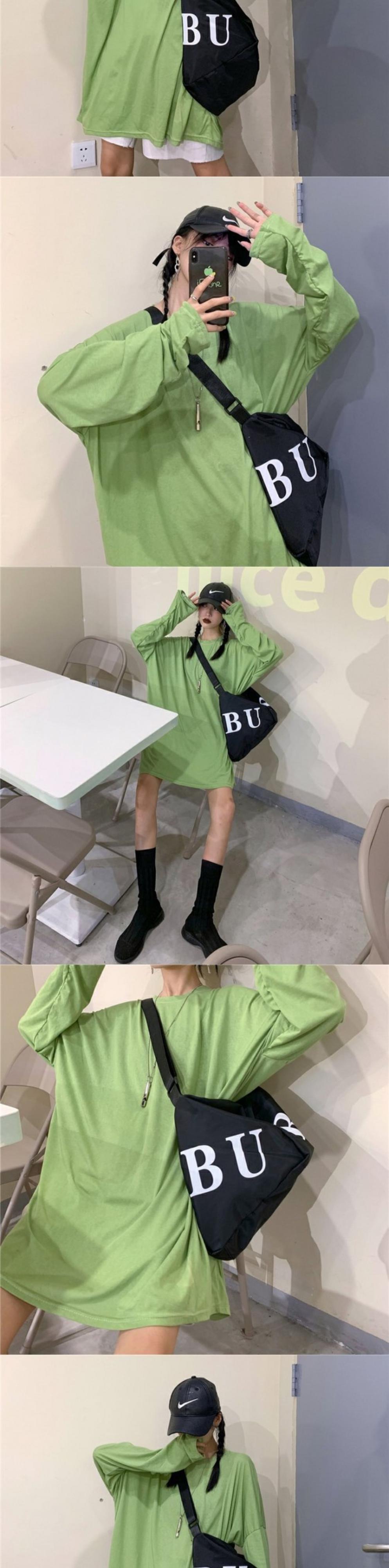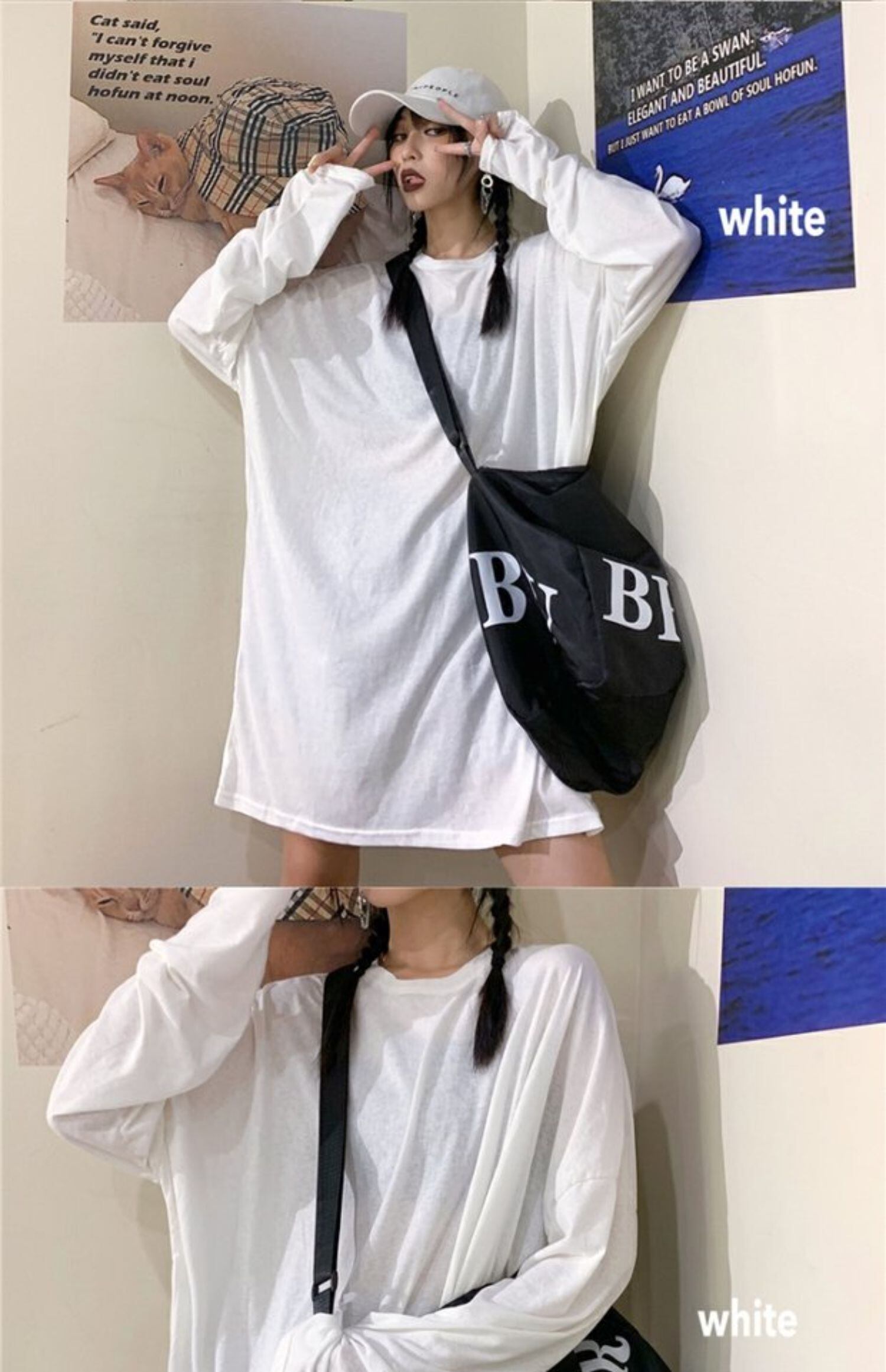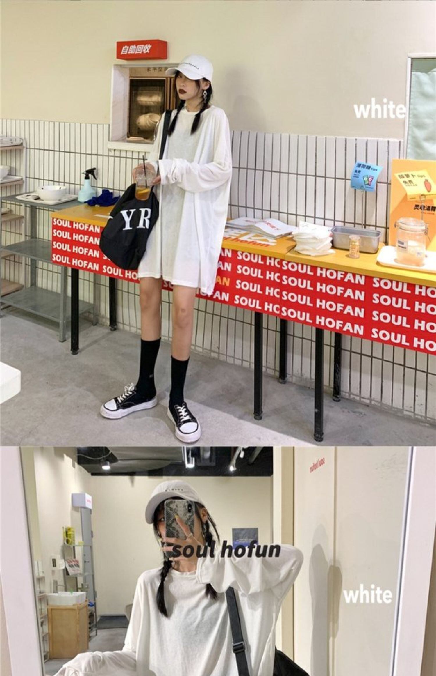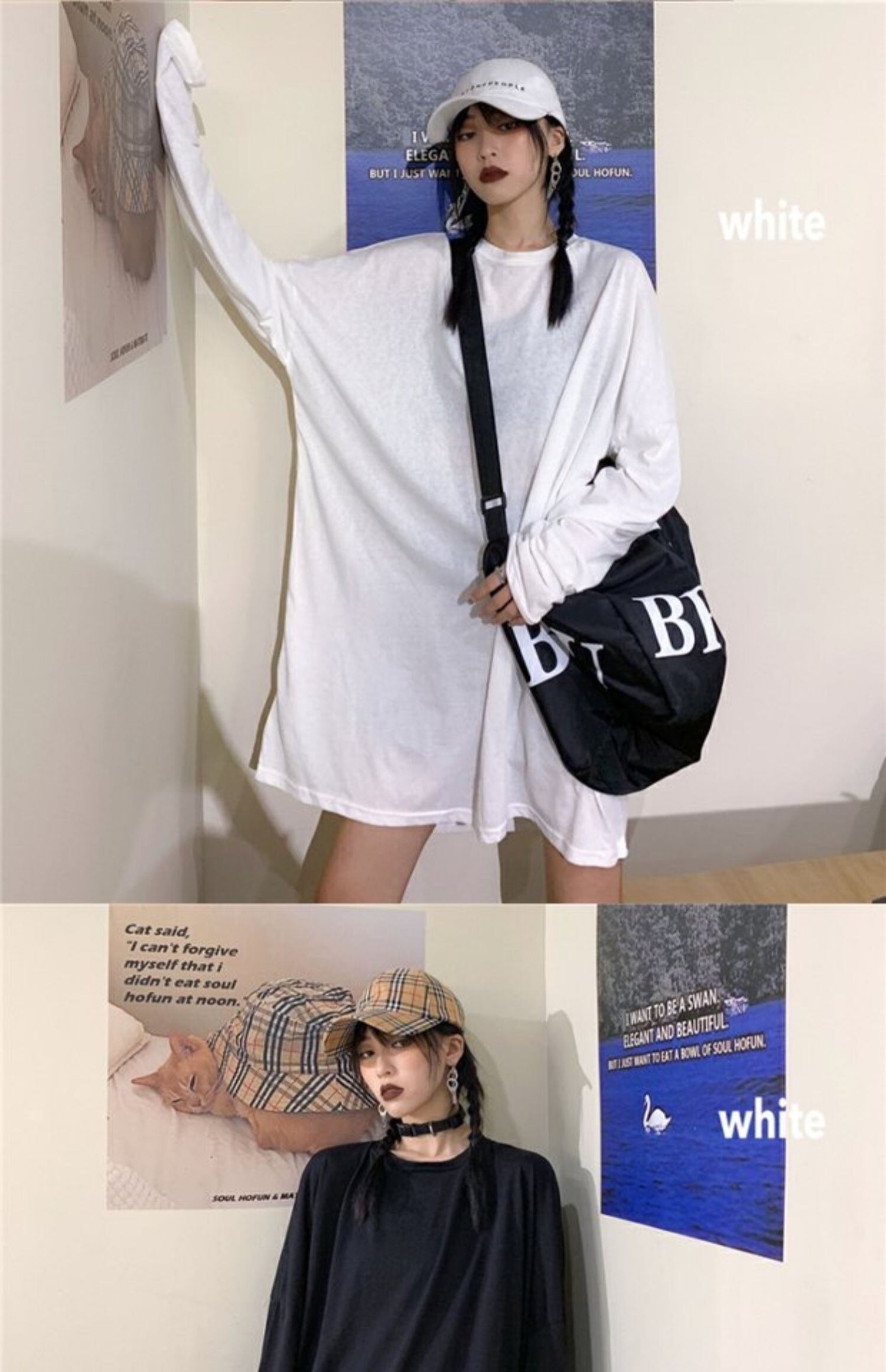 レッドルーズソリッド カラーTシャツ ラウンドネックトップス ロング 大きめサイズ かわいい Oネック ソリッドカラー ケッペル55427814546