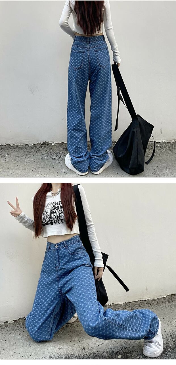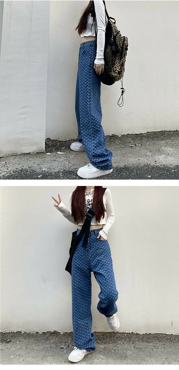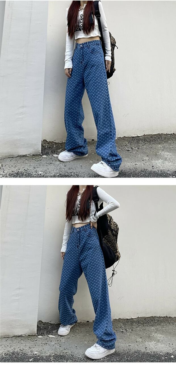 スタイルカジュアルジーンズ ハイウェストウェストスリムパンツ スタンダードジャカードワイドレッグ レトロ ストリート ワイドパンツ ケッペル20022032121