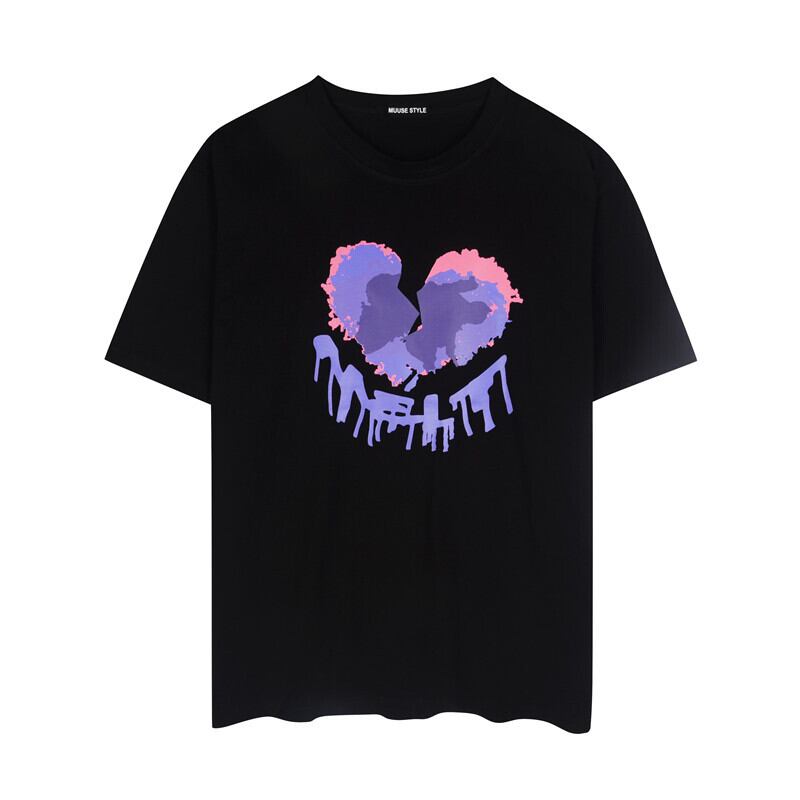 サマースタイルルーズプリントTシャツ ラウンドネック コットン 夏物 Oネック ケッペル3940806261