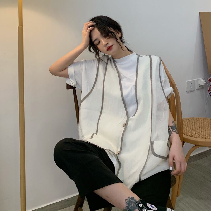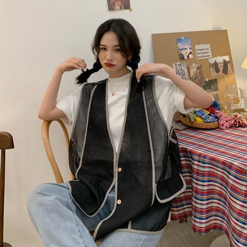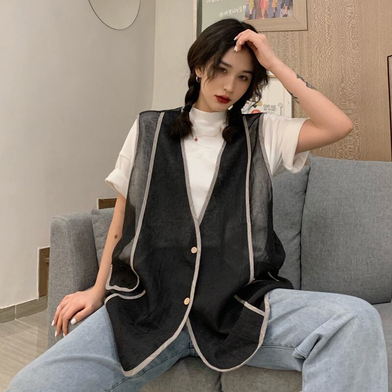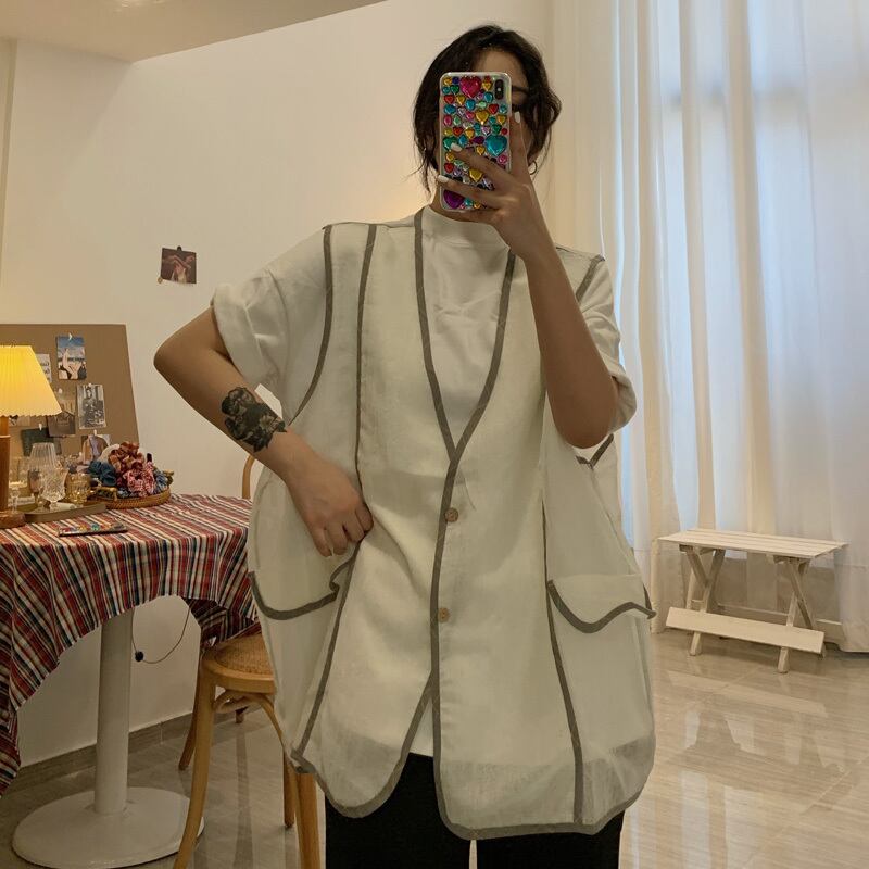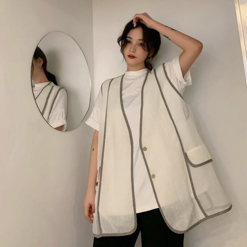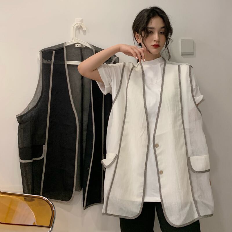 サマー薄手ルーズノースリーブジャケット カジュアルトップス 夏物 ケッペル80475300109