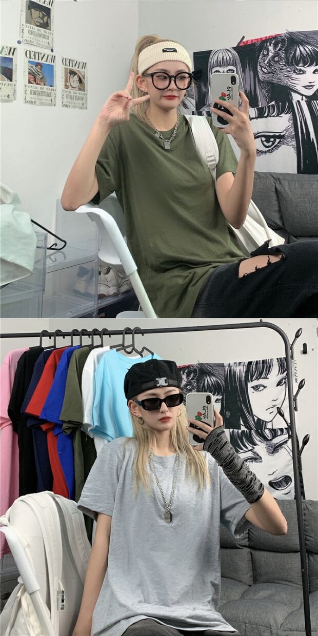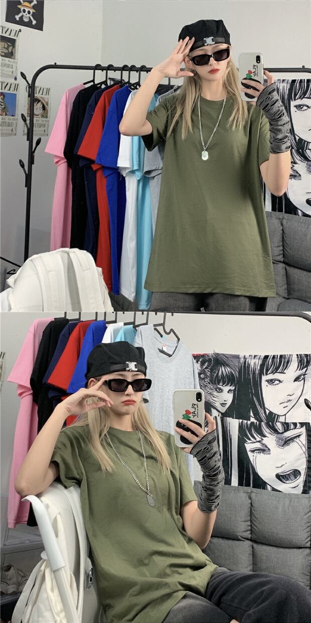 サマールーズソリッド カラーTシャツ シャツ レディースカジュアルベーシックラウンドネック 夏物 Oネック ソリッドカラー ケッペル96019920317